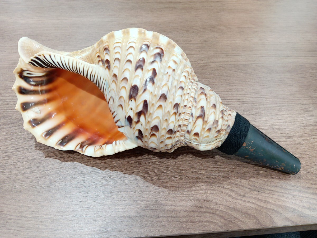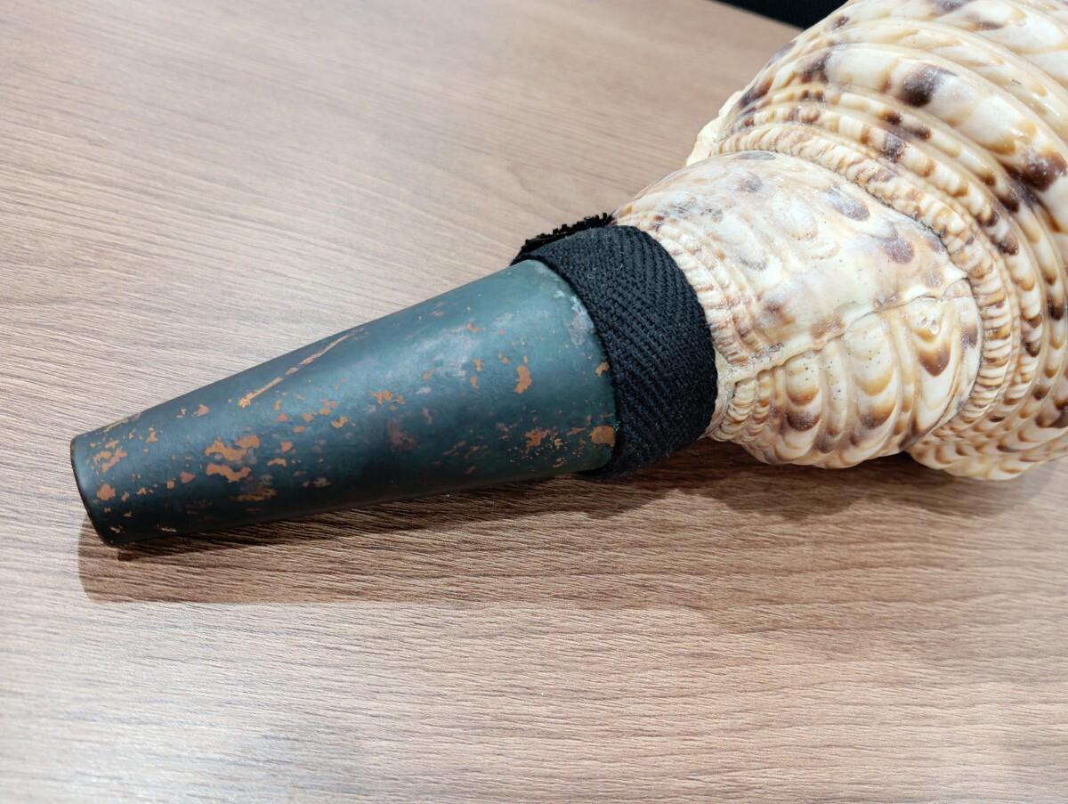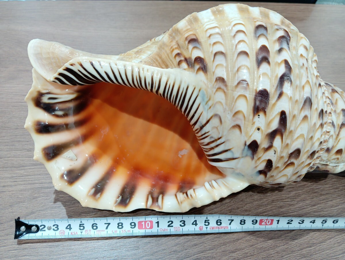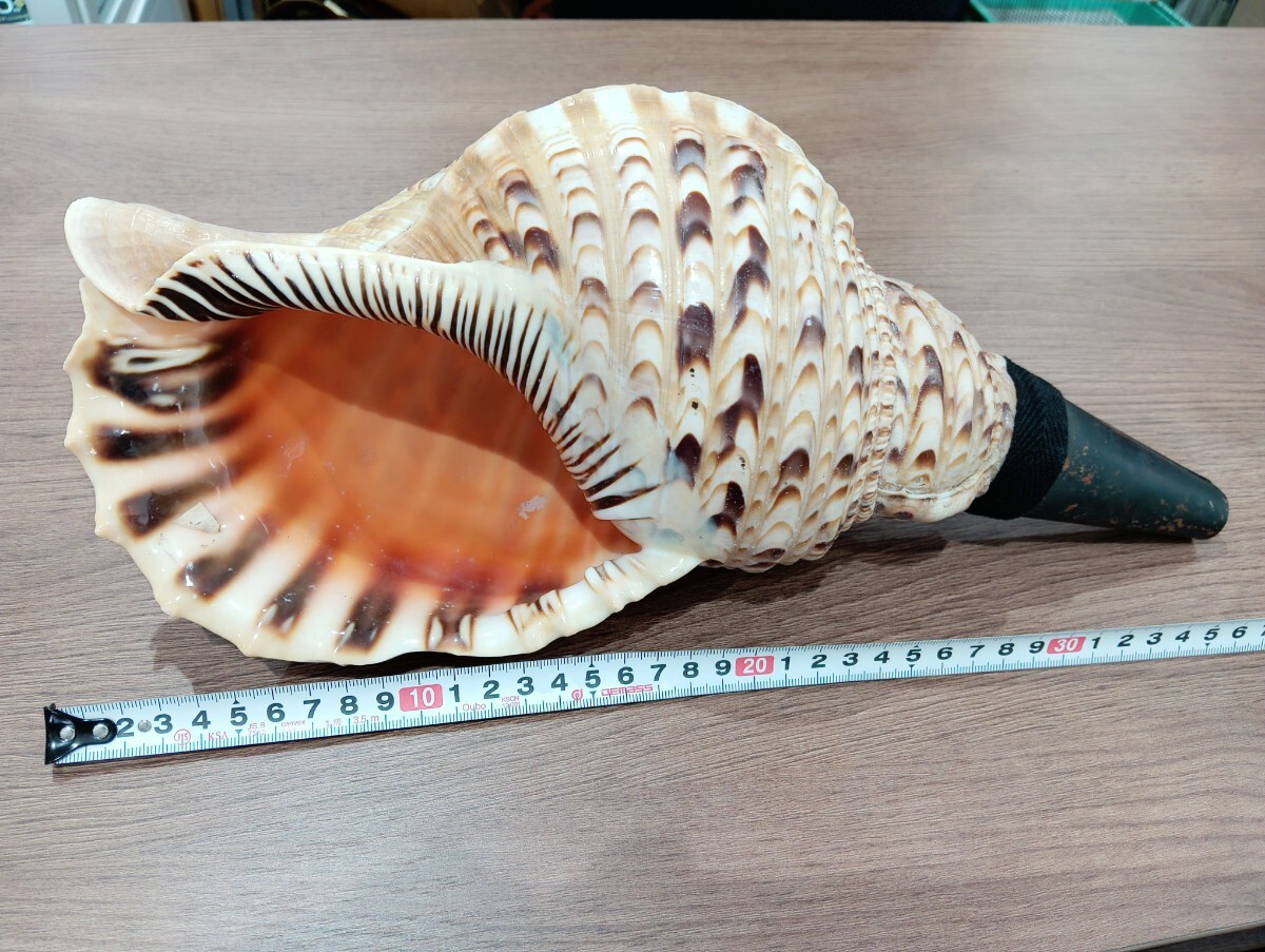 法螺貝 ほら貝 長さ 約36cm 重さ約672.5g 修験道 山伏 密教法具 置物 1円スタート