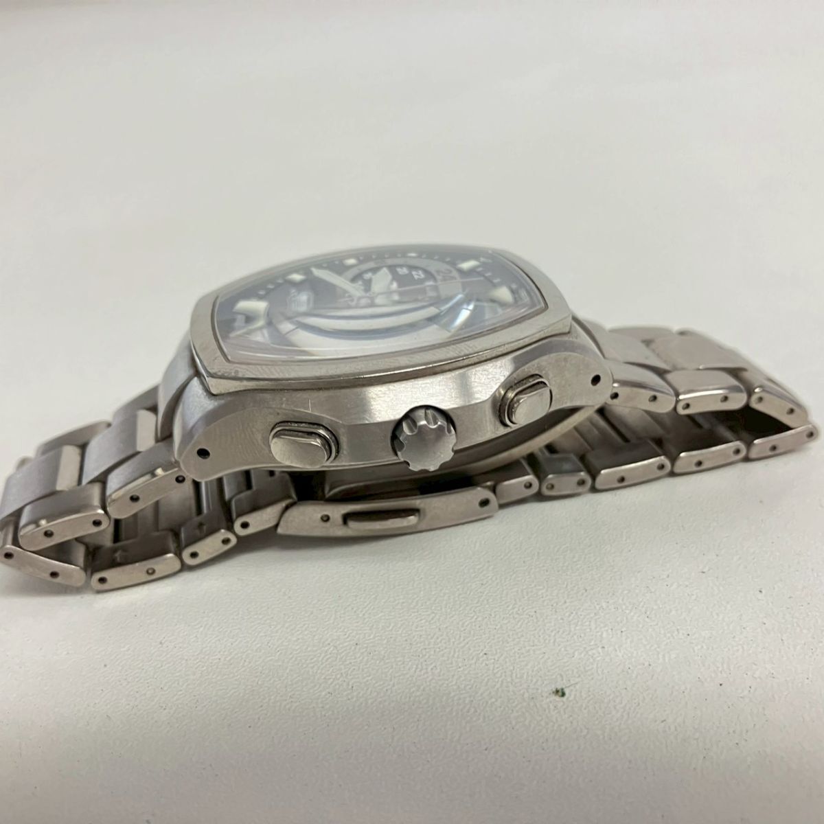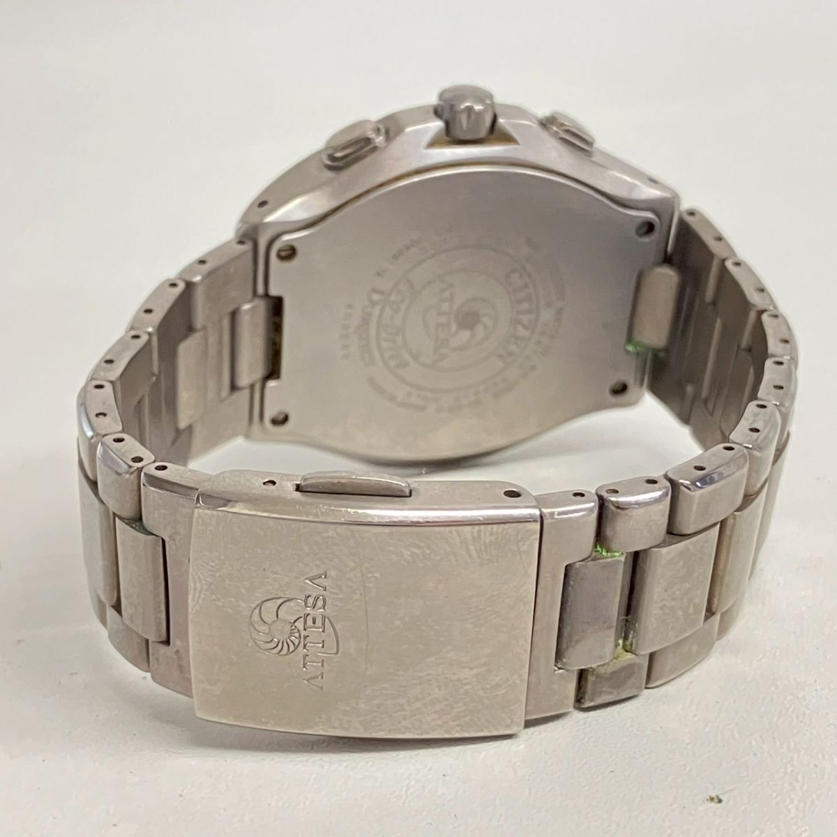 取り扱っている商品は未使用・未開封も含め、全て一度は人の手に渡った一点ものの中古・ジャンク扱いでの商品です。 当方素人ですので肉眼で確認できる簡易的な検品、採寸、および簡易梱包となります。 ※稼働の記載につきましては秒針等の確認のみとなり、全体の動作を保証するものではございません。 また、出品時の中古品の動作状況となりますので、予めご了承の上でご入札ください。 不動の表記につきましてはクォーツ式のムーブメントの場合、動作未確認の状態となります。 電池交換後、不具合があった場合でも返金、返品の対象とはなりませんので、予めご了承くださいますようお願い致します。 細かな日差、オーバーホール状況、社外パーツの使用に関しては保証しかねますので、ご理解いただけた上でのご入札をお願い致します。 上記を踏まえた上で中古品、ジャンク商品として出品させていただいておりますので、全てご理解いただけた上でのご入札をお願いいたします ------------------------------------------------------------------------- 【メーカー】 CITIZEN 【モデル名】 ATTESA 【型番】 E600-T006381 【シリアル】 4N2263 【サイズ】 直径約4.3cm 腕回り約18cm 【付属品】 画像参照 【稼働状態】 不動 【その他状態】 リューズ動作 時間:OK 日付:OK 曜日:OK ------------------------------------------------------------------------- 画像にあるものが全てです。 他詳細は画像にてご判断ください。 ※目立つ傷や汚れを中心に写真を撮っておりますが、画像に写りきっていない傷等がある場合もございます。予めご了承ください。 ※商品を多数出品している関係で、稀に商品説明や画像に誤りがある場合がございます。予めご了承ください。 こちらのページをご覧いただく際は、商品説明文と掲載している画像の全てを確認いただいた上でご入札ください。 | |||||||