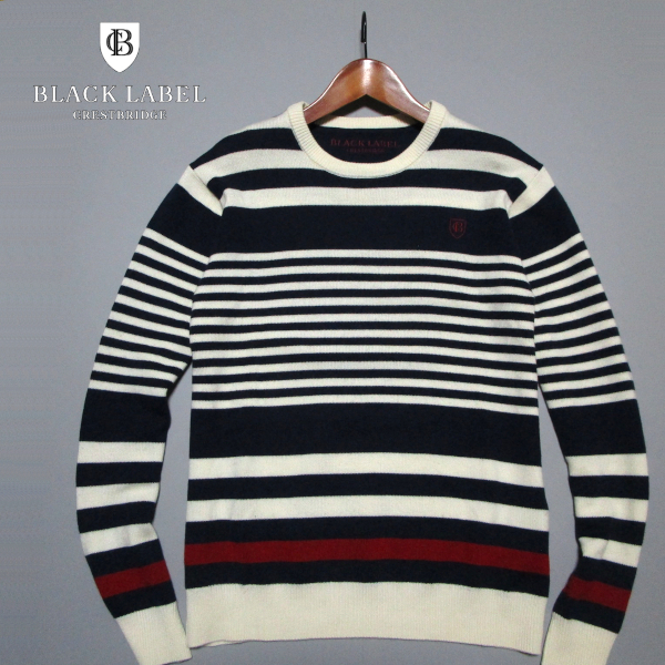 【ブラックレーベル クレストブリッジ】 パネルボーダー クルーネックニット サイズ2(M) BLACK LABEL CRESTBRIDGE 三陽商会