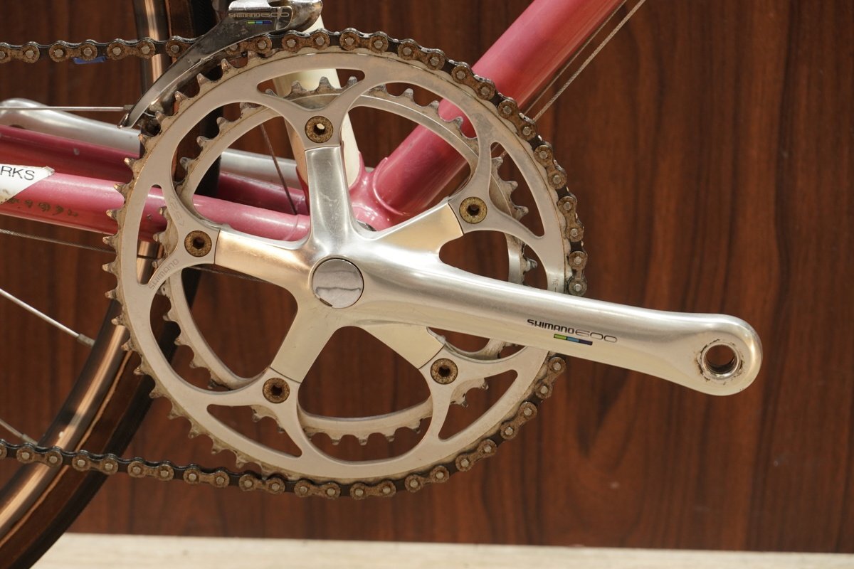 年式:2000年頃 フレーム:クロモリ フォーク:クロモリ メインコンポ:SHIMANO DURA-ACE 105 600MIX クランク:SHIMANO 170mm 52T:42T ホイール:SHIMANO 7400 DURA-ACEハブ ARAYA AERO 4リム タイヤ:700X21C チューブラー スプロケット:8S 13T:23T ハンドル幅:460mm ステム長:80mm サイズ:490(C-T) トップチューブ長(C-C):510mm※実測 (※ホリゾンタル換算値) シートチューブ長(C-T):490mm ※実測 適応身長:160cm ~170cm程度 実測重量:8.95kg ※掲載画像状態 |