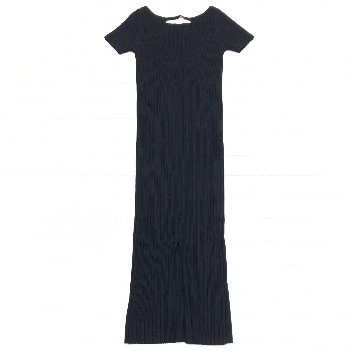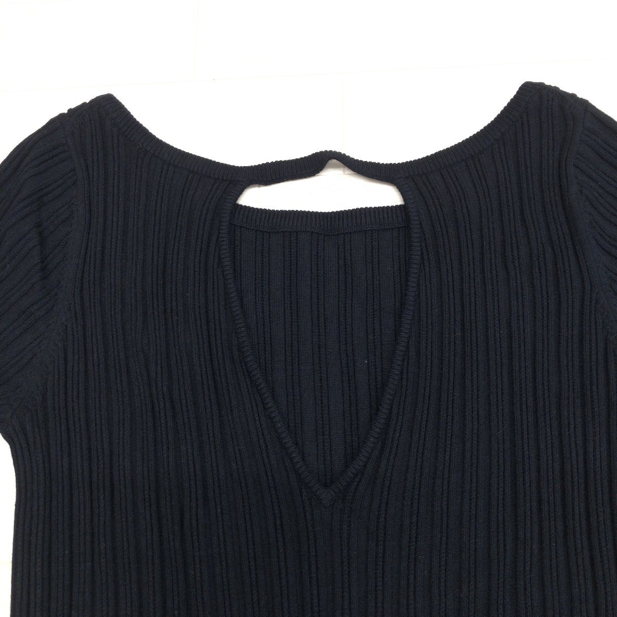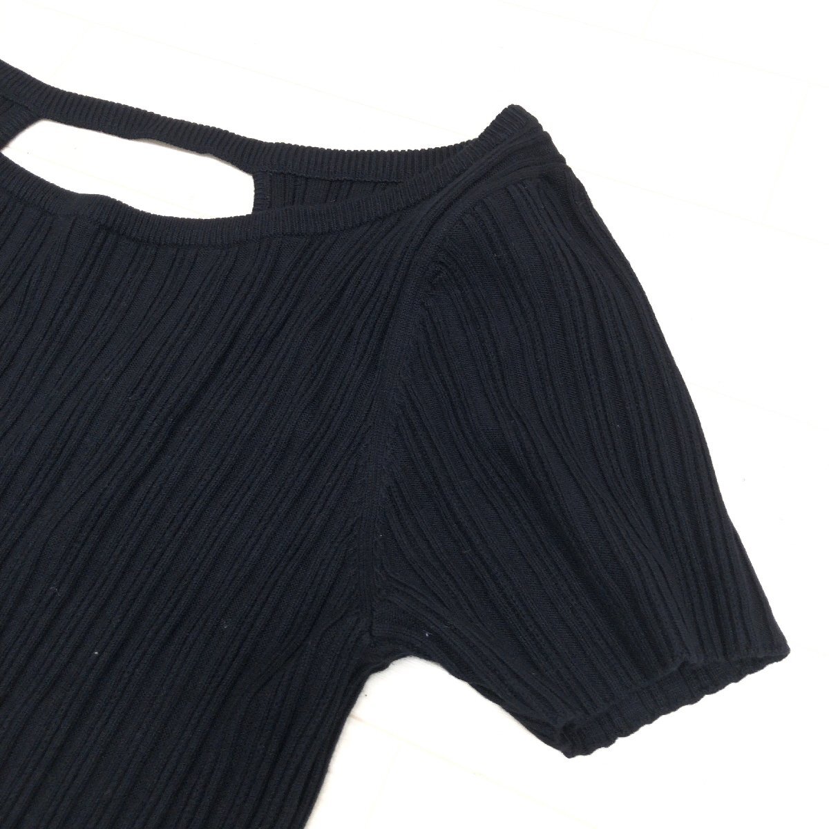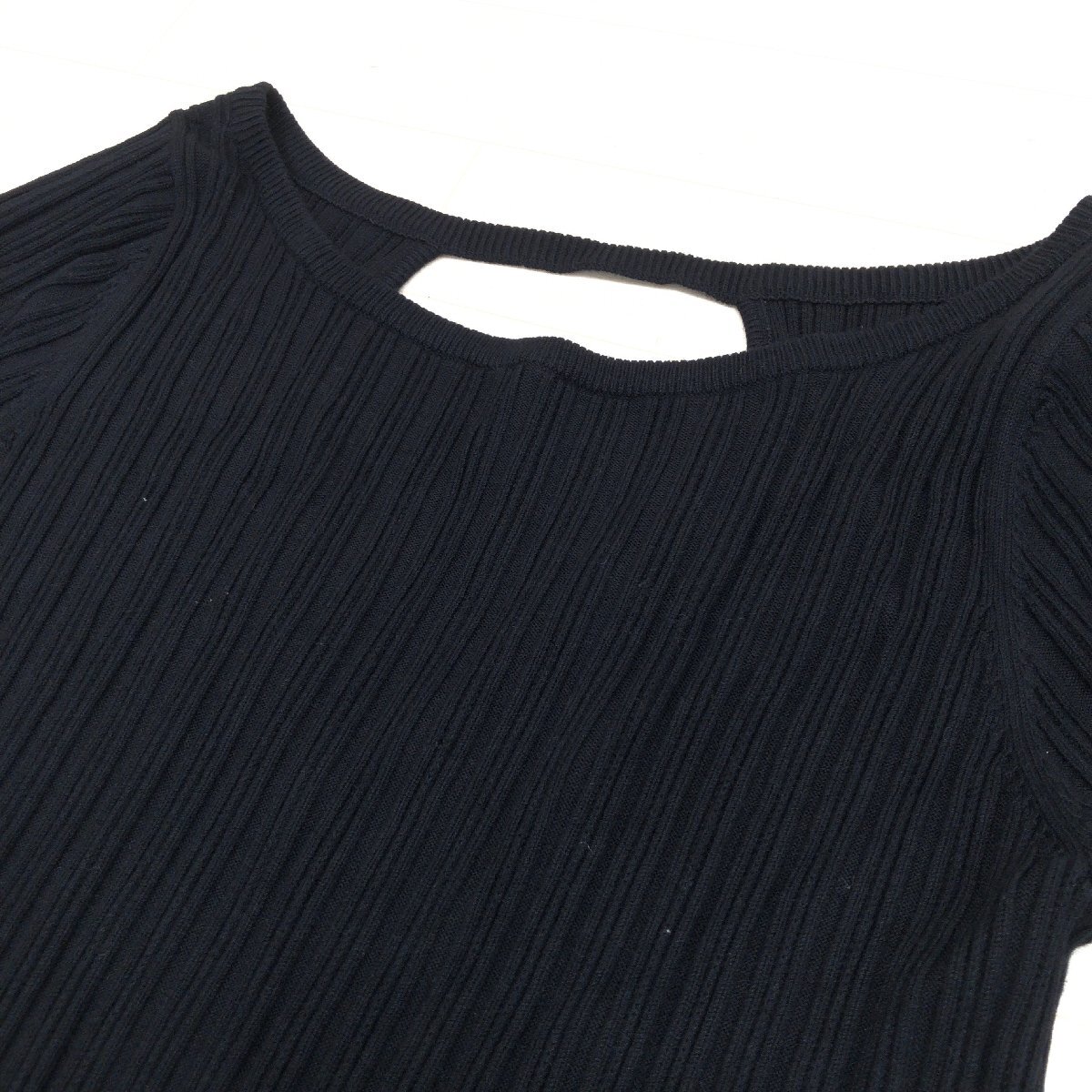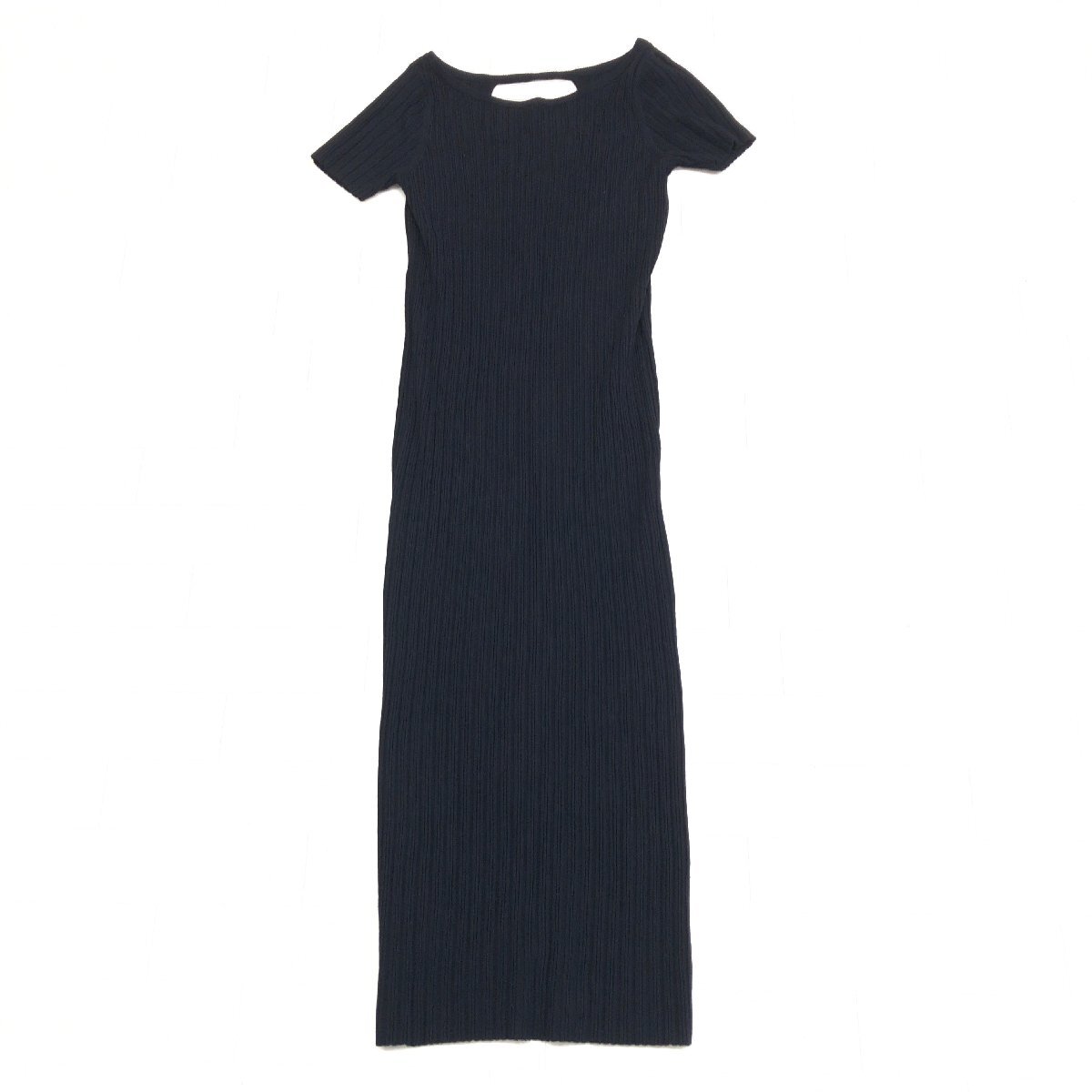 ●eimy istoire エイミーイストワール 定価10,978円 バックオープン リブサマーニット ワンピース F 黒 ブラック ミモレ丈 半袖 レディース