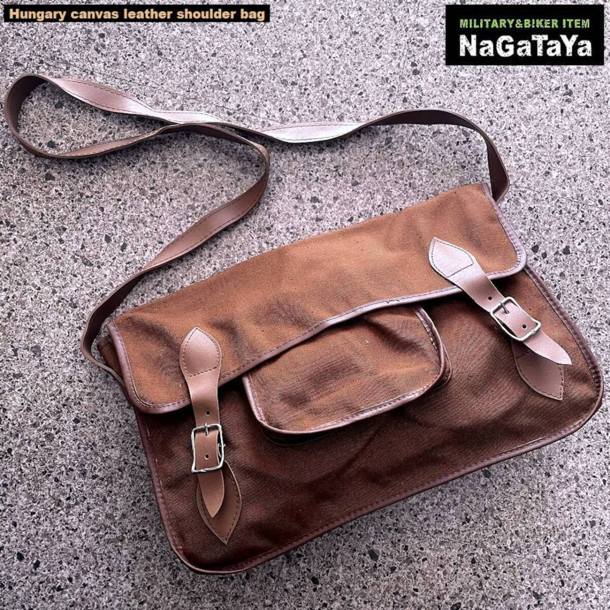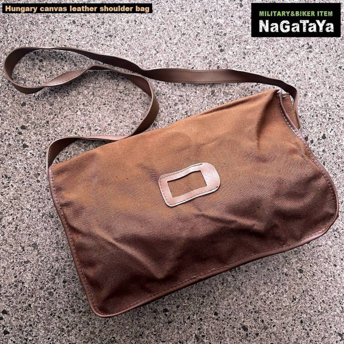★ デッドストック 新品 ハンガリー軍 キャンバス生地 スクエア型 ビンテージ ショルダーバッグ ブラウン ★