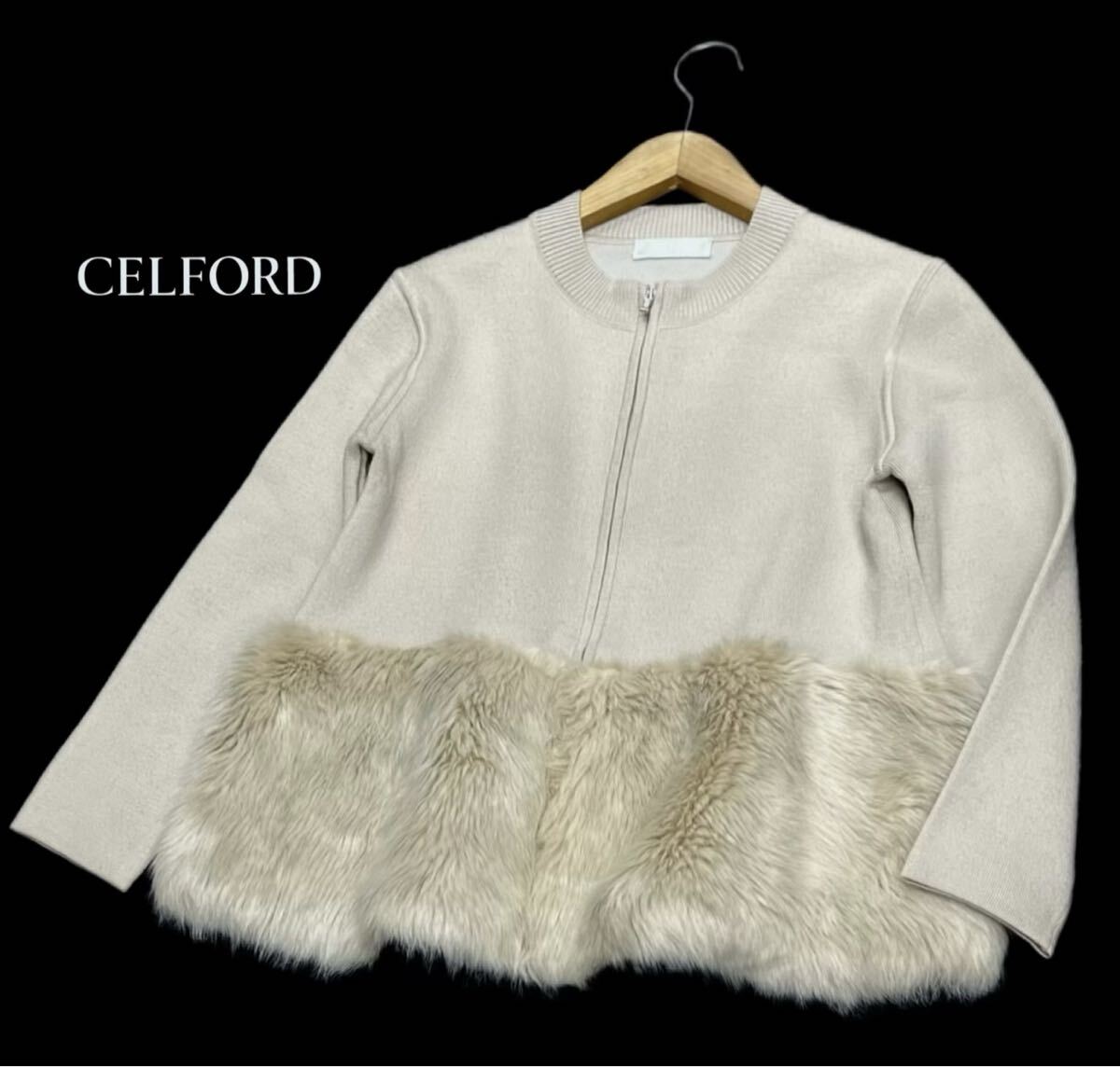 CELFORD★セルフォード★(38)裾エコファー ジップアップ ニット ジャケット 管理No.071120ok