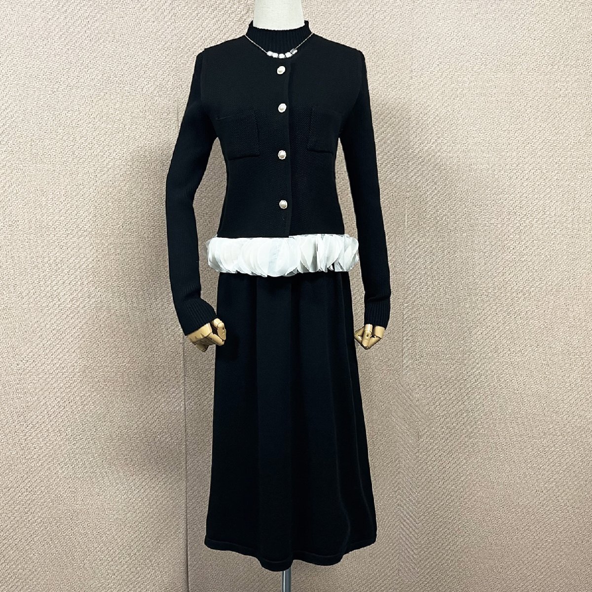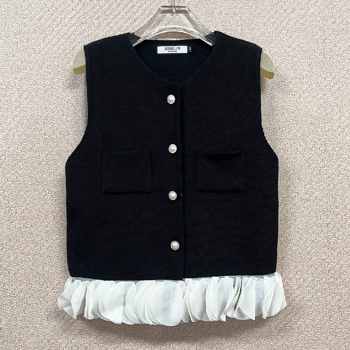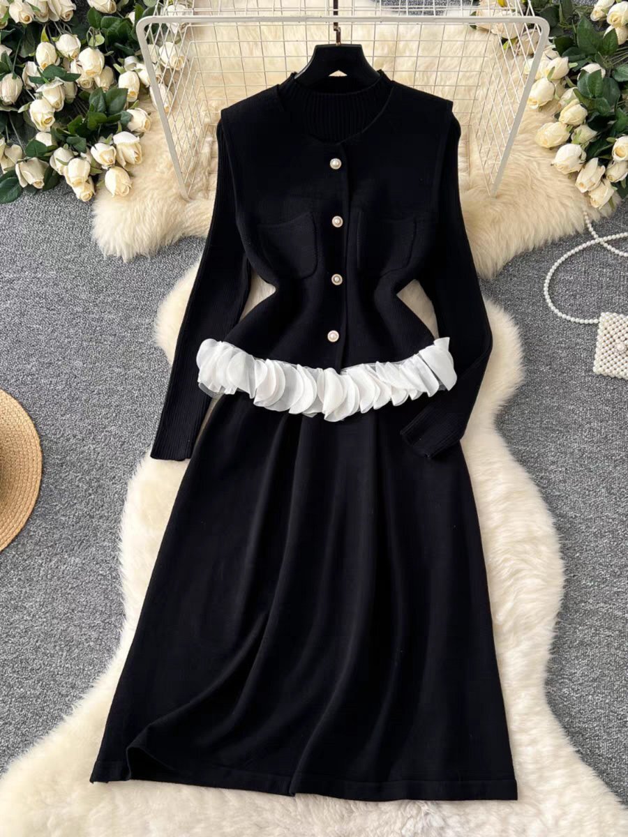 高級ヨーロッパ製※定価8万◆ブルガリア発※RISELIN ワンピース 2点セット ウール混 ソフト 着せ ニット ベスト 通勤 OL レディース L/48