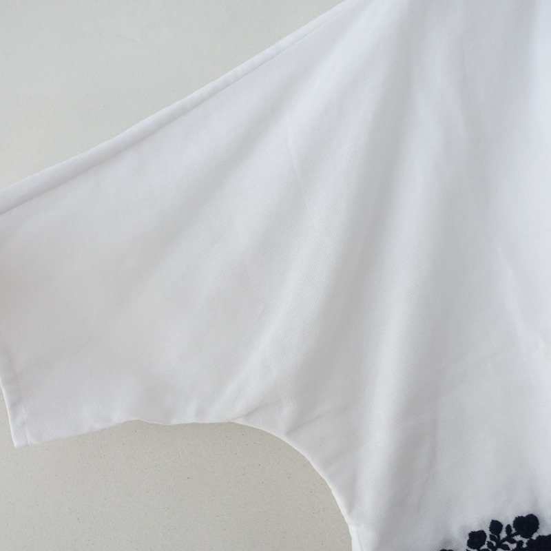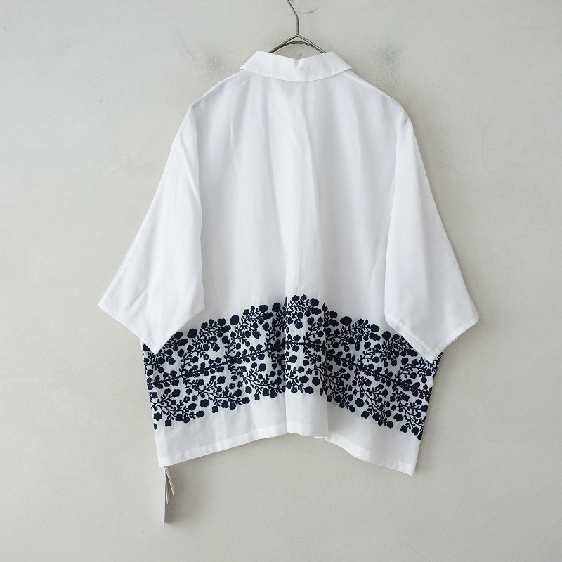 | 2025年春夏コレクション mina perhonenの「floraleaf」エンブロイダリードルマンブラウスです。カラーはホワイト×ダークネイビーです。サラリとした清涼感・透け感・通気性のあるコットンの細かな格子織り生地を使用。立体的なテキスタイル「floraleaf」の刺しゅうがあしらわれております。ドルマンスリーブのゆったりとしたシャツブラウスです。ポケットはございません。定価(メーカー希望小売価格)47,300円の商品です。 |