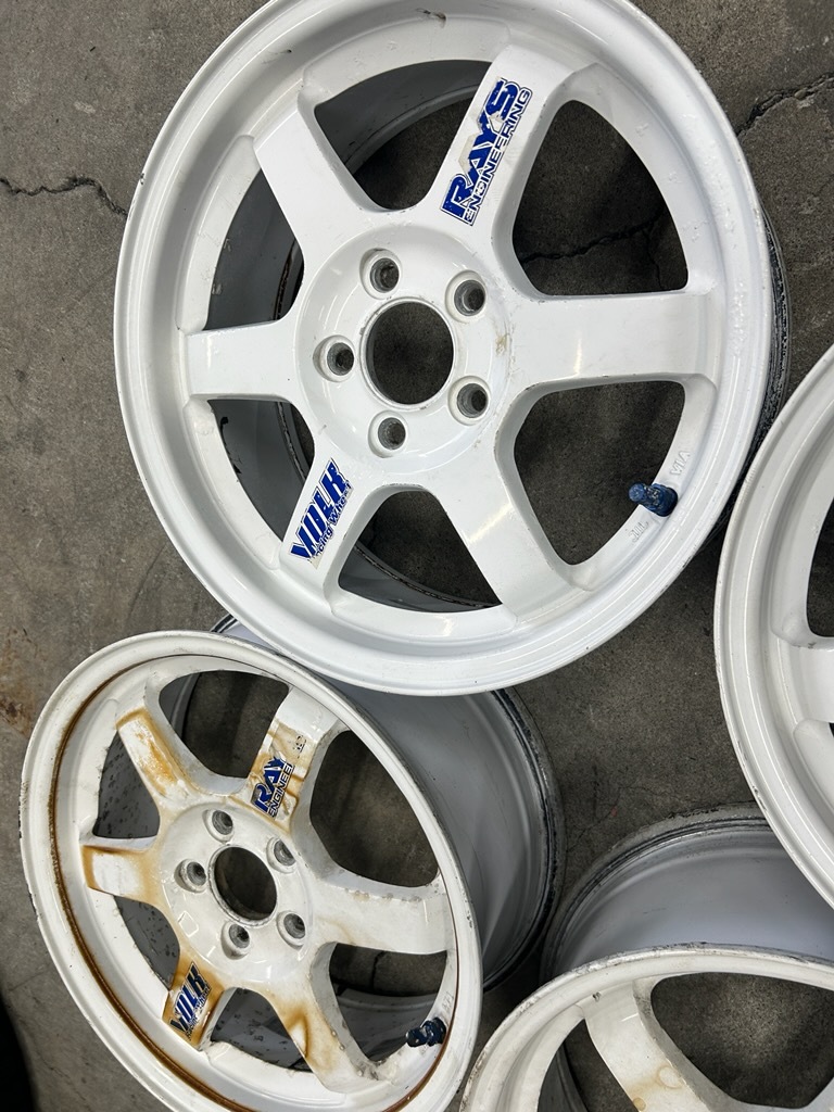 RAYS VOLLRACING TE37 ホイール4本 状態が悪いのでリペアベースなどに サビの付着 塗装の浮き ガリ傷など ノークレームノーリターン厳守できる方のみご入札ください。 |