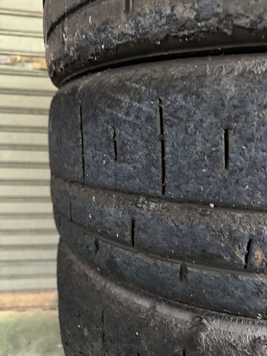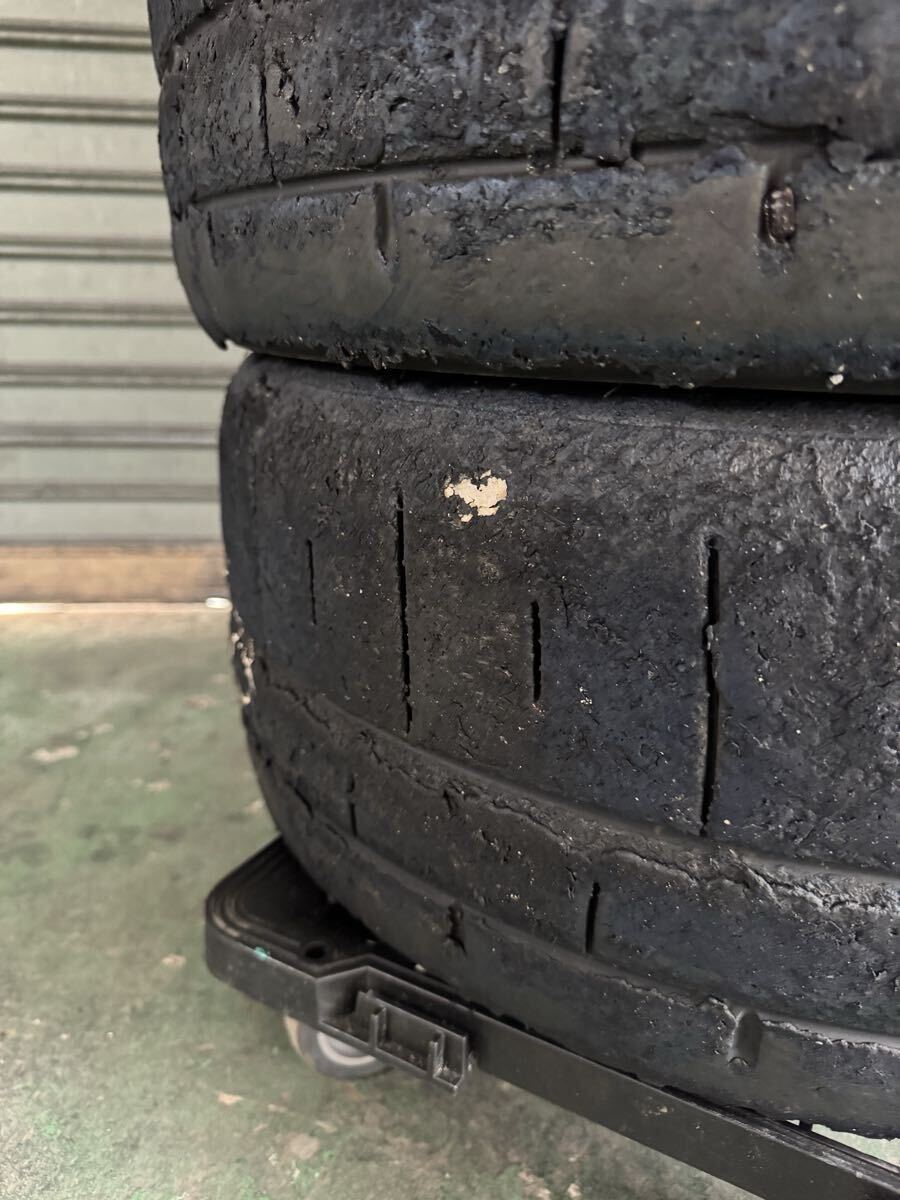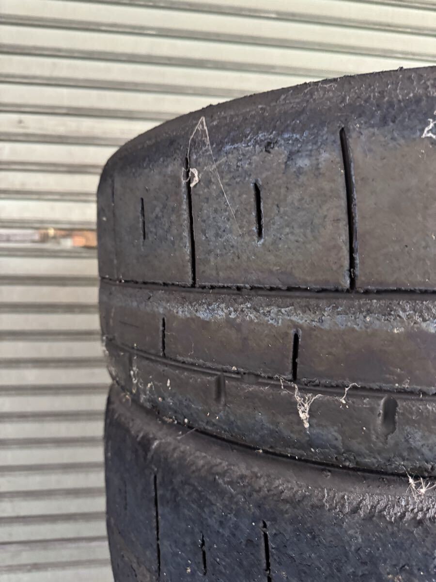 新品からサーキットを12LAPしたものです。使用後そのままですのでピックアップ(タイヤカス)が付着しておりますがサーキットでご使用される場合は熱入れで2〜3LAPで綺麗に取れます。まだまだ使えますのでサーキットのスポーツ走行や走行会、ジムカーナなど、練習用にはかなり良いタイヤかと思います。別途出品中の同じタイトル名の①よりもピックアップが多いものになります。画像にてご確認をお願いします。