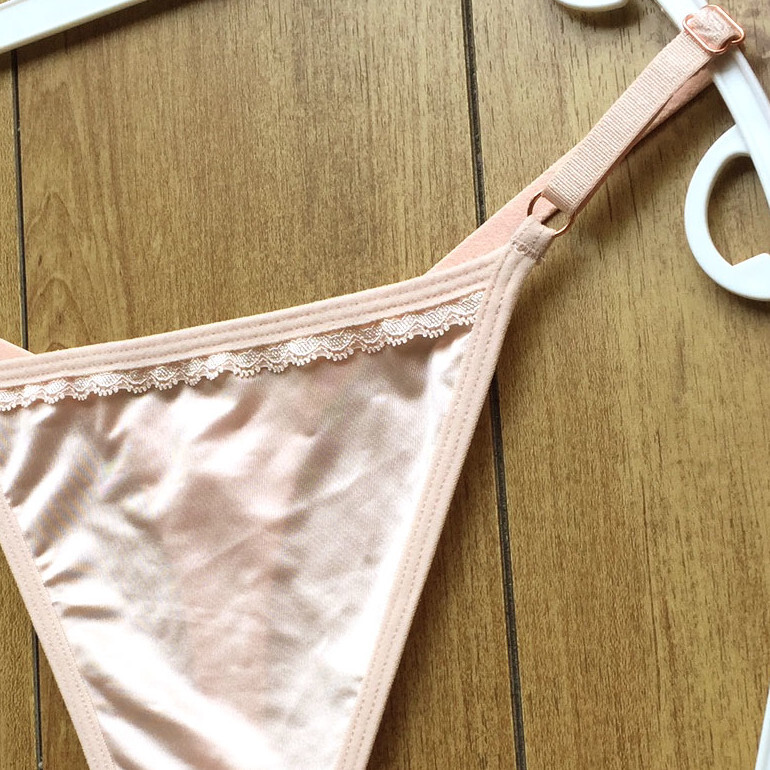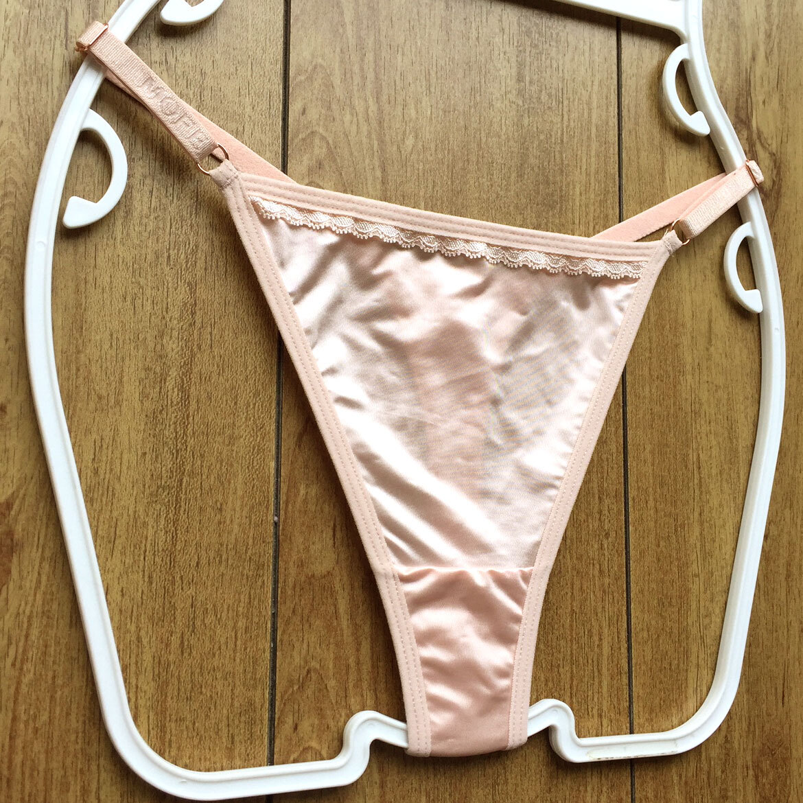 新品・未使用♪【MOFEI】つやつや光沢サテン風の輝き♪サイズ調整もOK美しいハイレグTバック/ピンク/L★パンティ/ショーツ/レディース下着を出品致します。