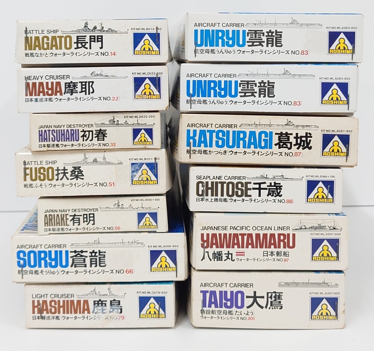 【K1177-23】大量 未組立 AOSHIMA 旧ロゴ ウォーターラインシリーズ おまとめ 13点セット 1/700 戦艦 日本駆逐艦 航空母艦 日本郵船