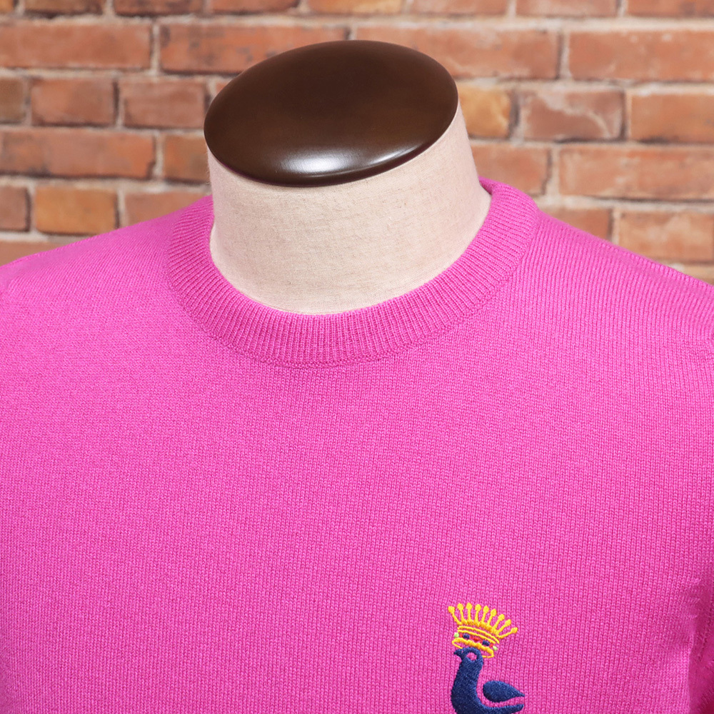 1円/秋冬/lucien pellat-finet/Mサイズ/丸首ニット HAM10786 カシミヤ100% 鳥&王冠 刺繍 セーター ペラフィネ 新品/ピンク/md142/
