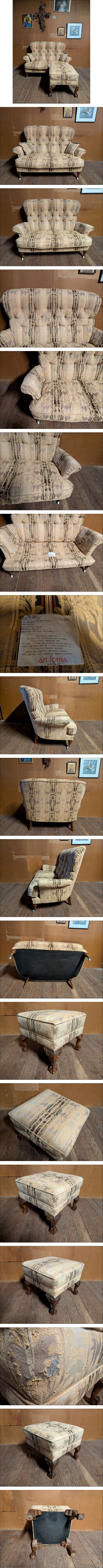 英国 イギリス art foma/アートフォーマ 2Pソファ オットマンスツール/アンティーク ヴィンテージ ビンテージ ストライプ クッション