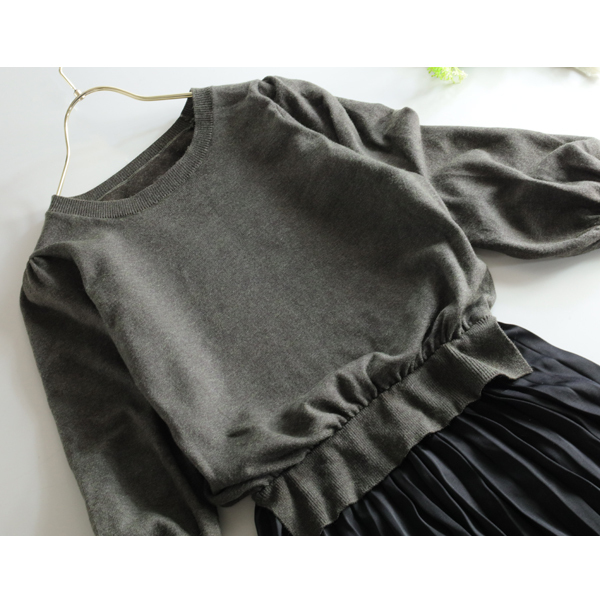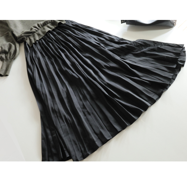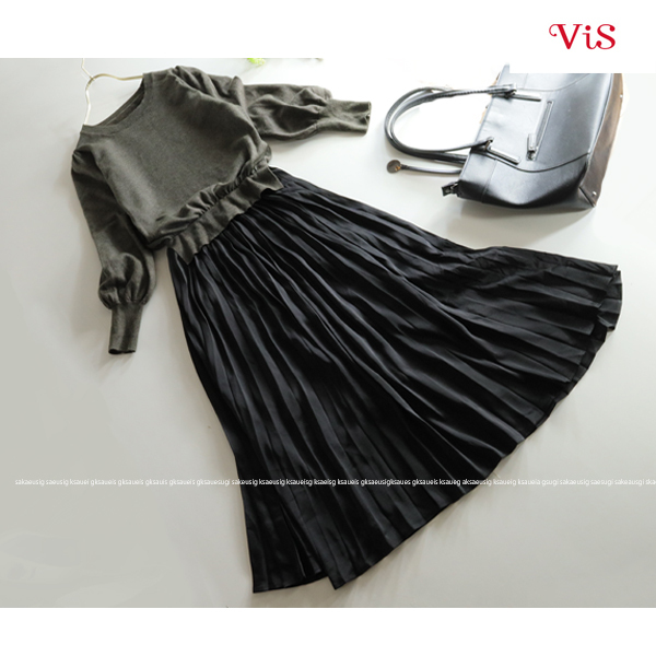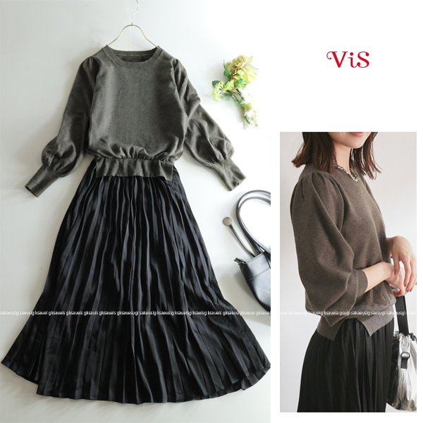VIS ビス/ロペピクニック★大人可愛い♪ニットトップス&プリーツスカート切替えロング丈ワンピース
