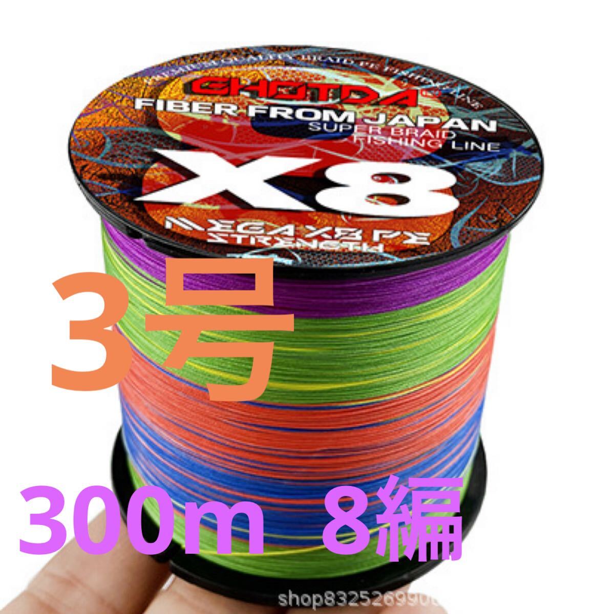 釣り糸 釣りライン PEライン 300m 3号 8本編 5色マルチカラー 釣り糸NPEライン高強