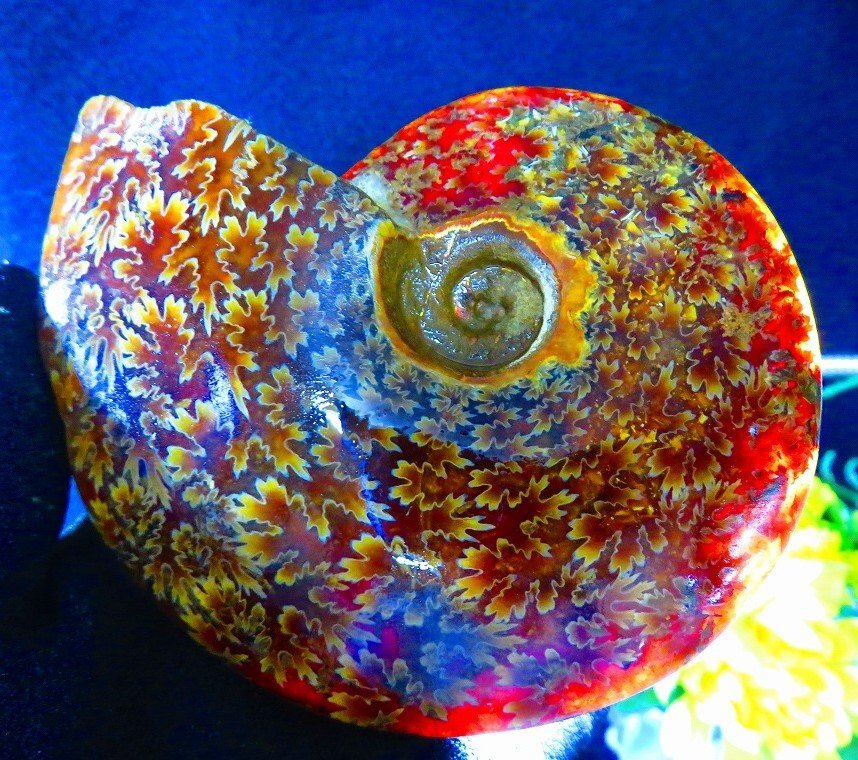 | 最大約:128mm 軟体動物頭足類の化石動物。古生代のデボン紀に出現し,中生代の白亜紀まで繁栄した。現生のオウムガイに近縁で,平面的に巻いた螺旋(らせん)形の殻をもち,直径2センチメートルから2メートル 以上まで種類が多い。海生で,種としての存続期間が短く,分布が広いので,示準化石とされる。 約1億4500万年前から6600万年前の中生代白亜紀の間を生きたマダガスカル産アンモナイトはオパールの様な虹色の色彩を持つ保存状態の極めて良い化石として世界的に有名です。 化石になってからもなお美しい輝きを放つ絶景にも似たアンモナイトの奇跡には自然 の神秘を感じざるを得えません。 世界中にふたつとないひとつだけの一品をコレクションとして、またお子様の教材としてご鑑賞頂ければ幸いです。 | |||