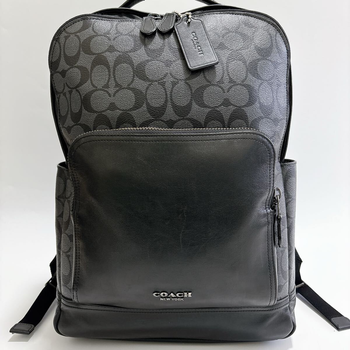m565 COACH コーチ リュック グラハム シグネチャー A4 ビジネス 通勤 レザー PVC ブラック 黒 チャコール バックパック メンズ バッグ