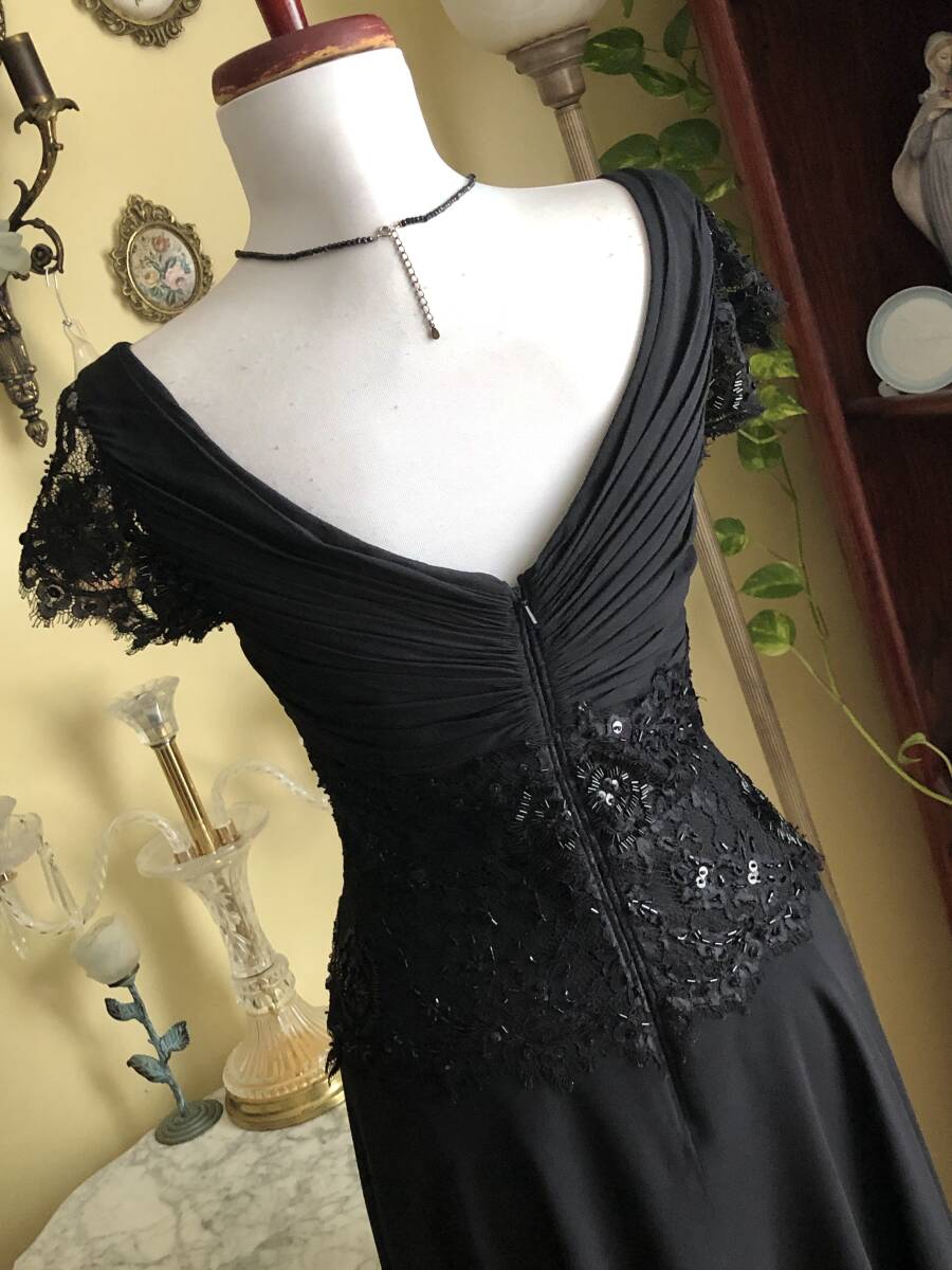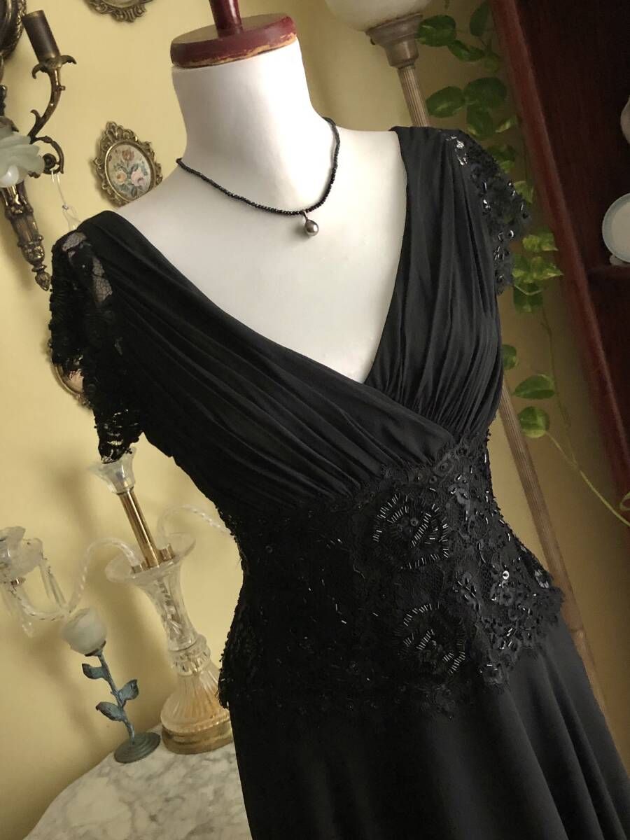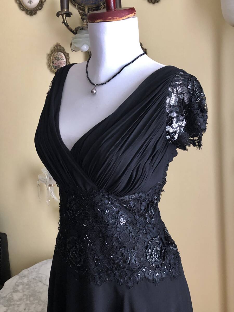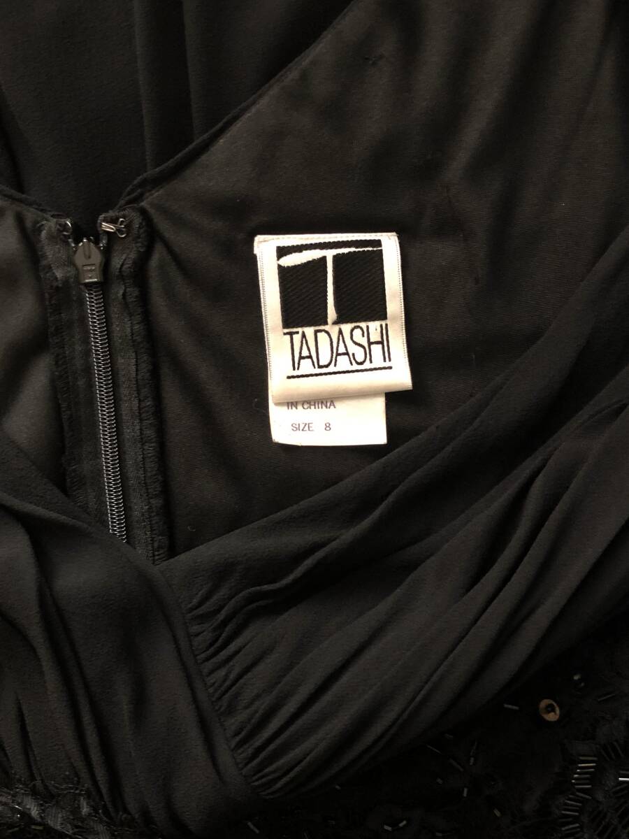 【TADASHI SHOJI/タダシショージ】ビーズ付花柄レース/美ドレープ/Aラインフレアー/黒シルクシフォン/カクテルドレス (US・8/11号)#12