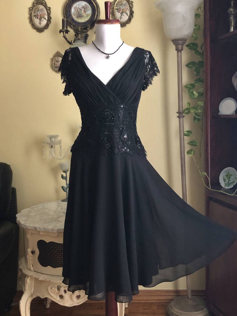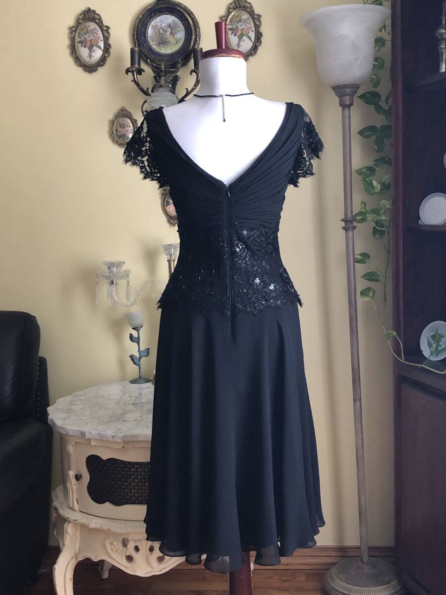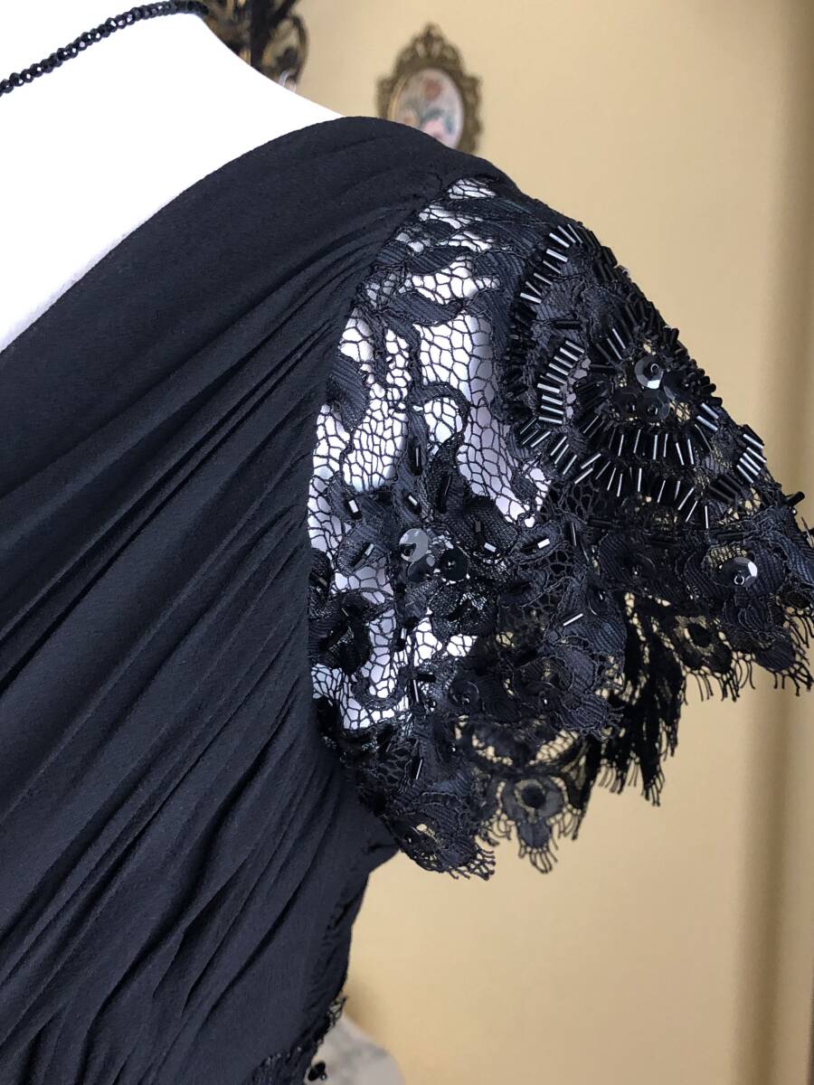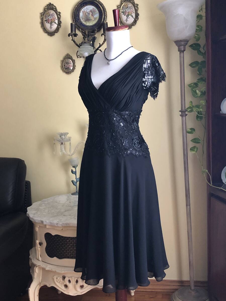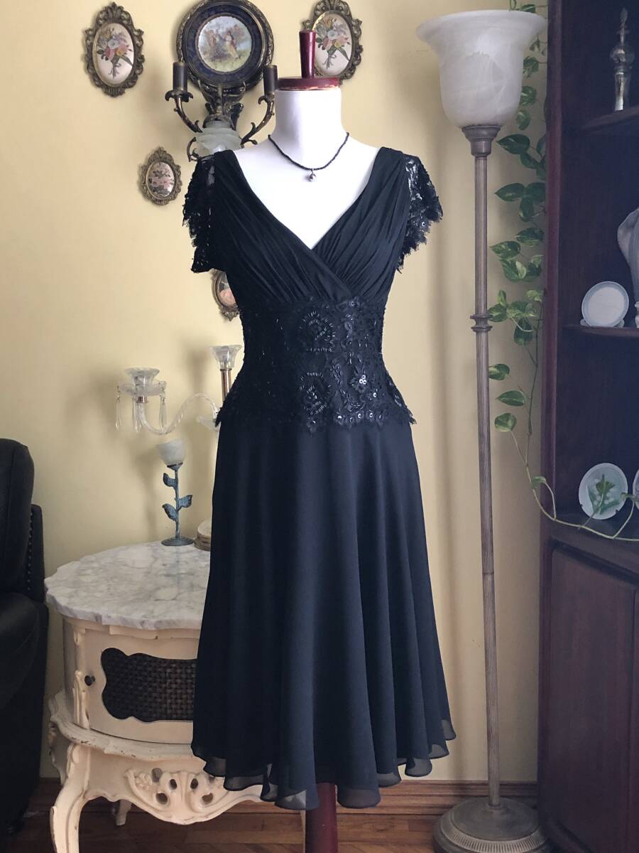【TADASHI SHOJI/タダシショージ】ビーズ付花柄レース/美ドレープ/Aラインフレアー/黒シルクシフォン/カクテルドレス (US・8/11号)#12