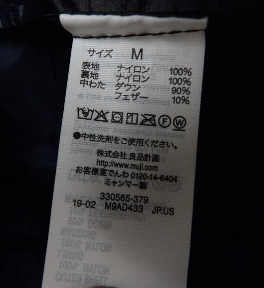 ●無印良品ノーカラーライトダウンジャケットM●軽量