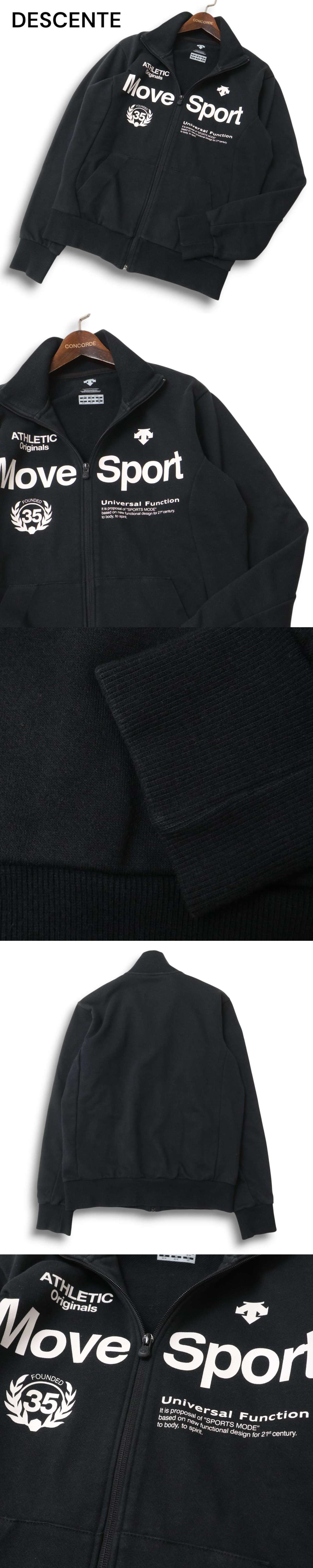 DESCENTE デサント Move Sport★ ロゴ プリント スウェット トラック ジャケット ブルゾン Sz.L メンズ 黒 トレーニング