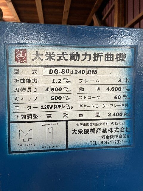 岡山県発【1円スタート!】大栄 自動折曲機 DB-80 1240DM 刃物長4.5m カラクサ折対応 建築板金 動作良好 ※現地引き取り限定★