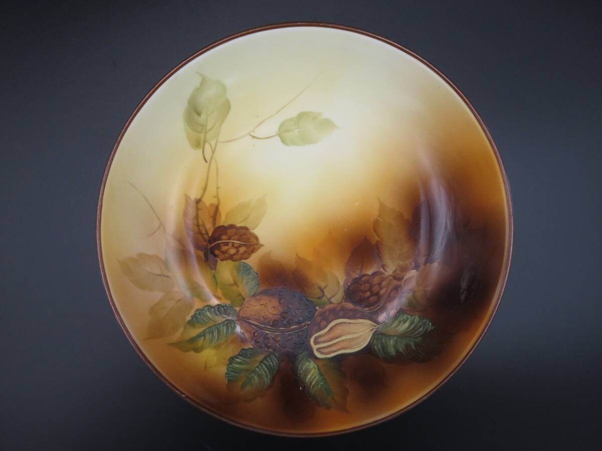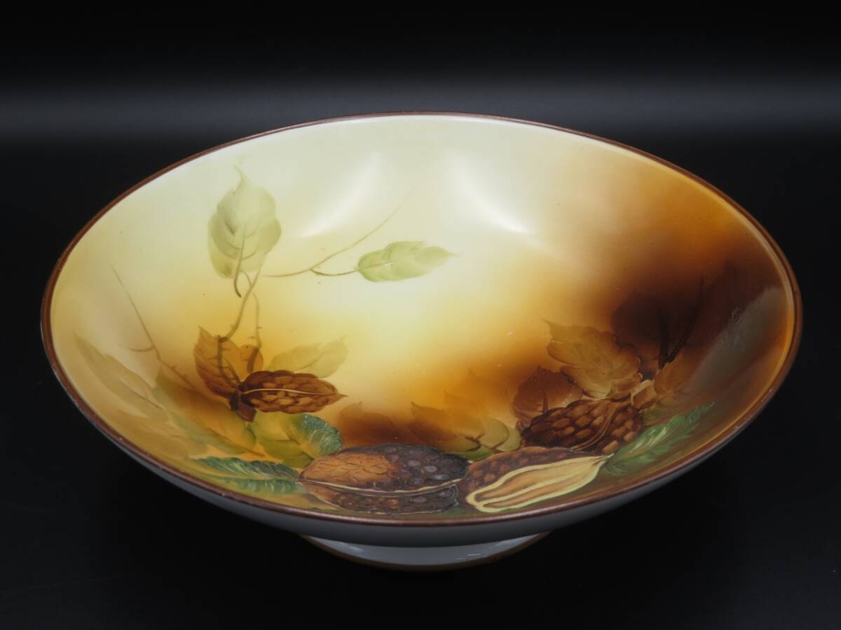 オールドノリタケ コンポート皿 月桂樹 M クルミ 胡桃 盛上げ ハンドペイント アンティーク ヴィンテージ レトロ 明治 大正 Noritake