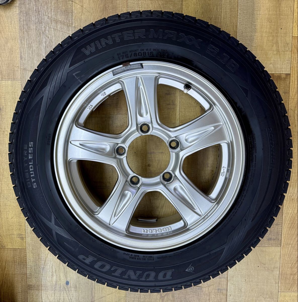 バリ山 ジムニー JB23 スタッドレスタイヤ 175/80R15 ダンロップ WINTER MAXX SJ8 KEELER アルミホイール 4本セット 売切り
