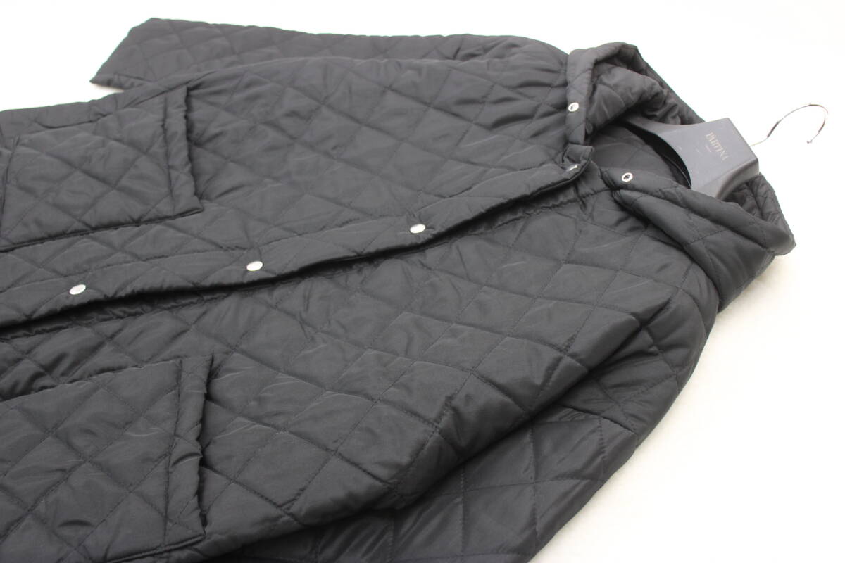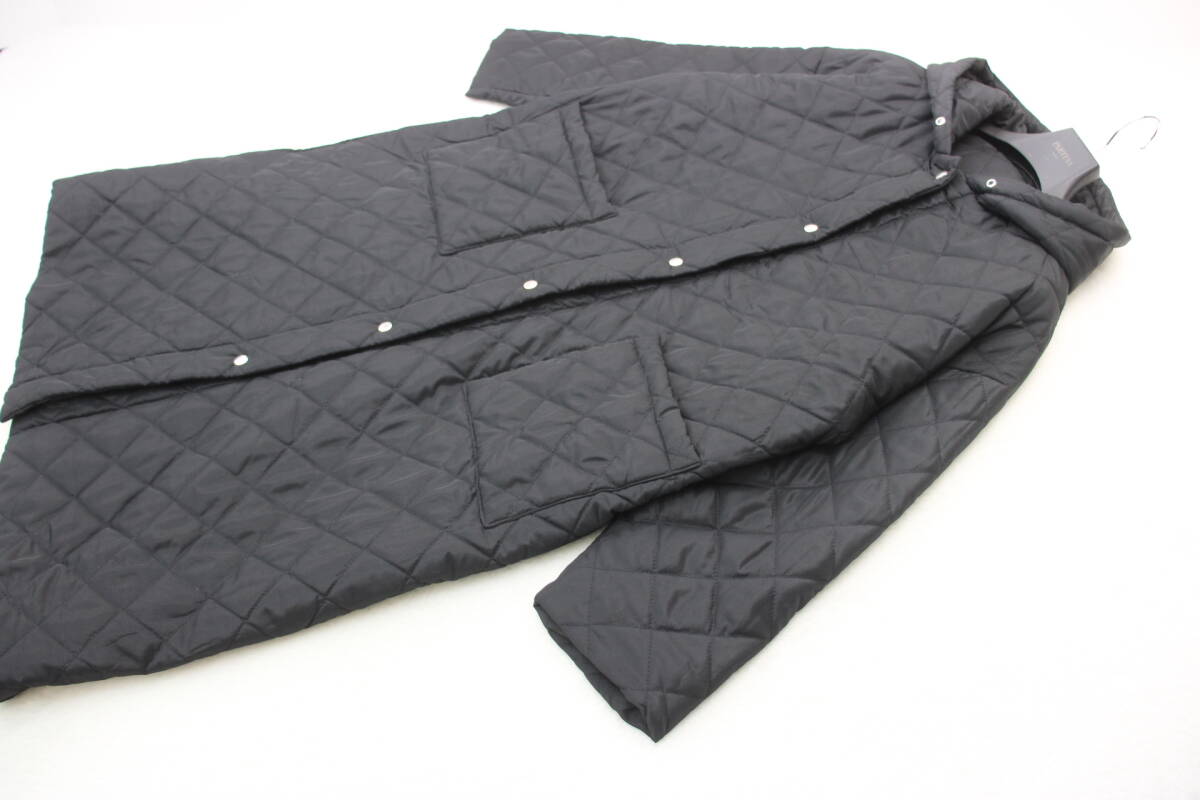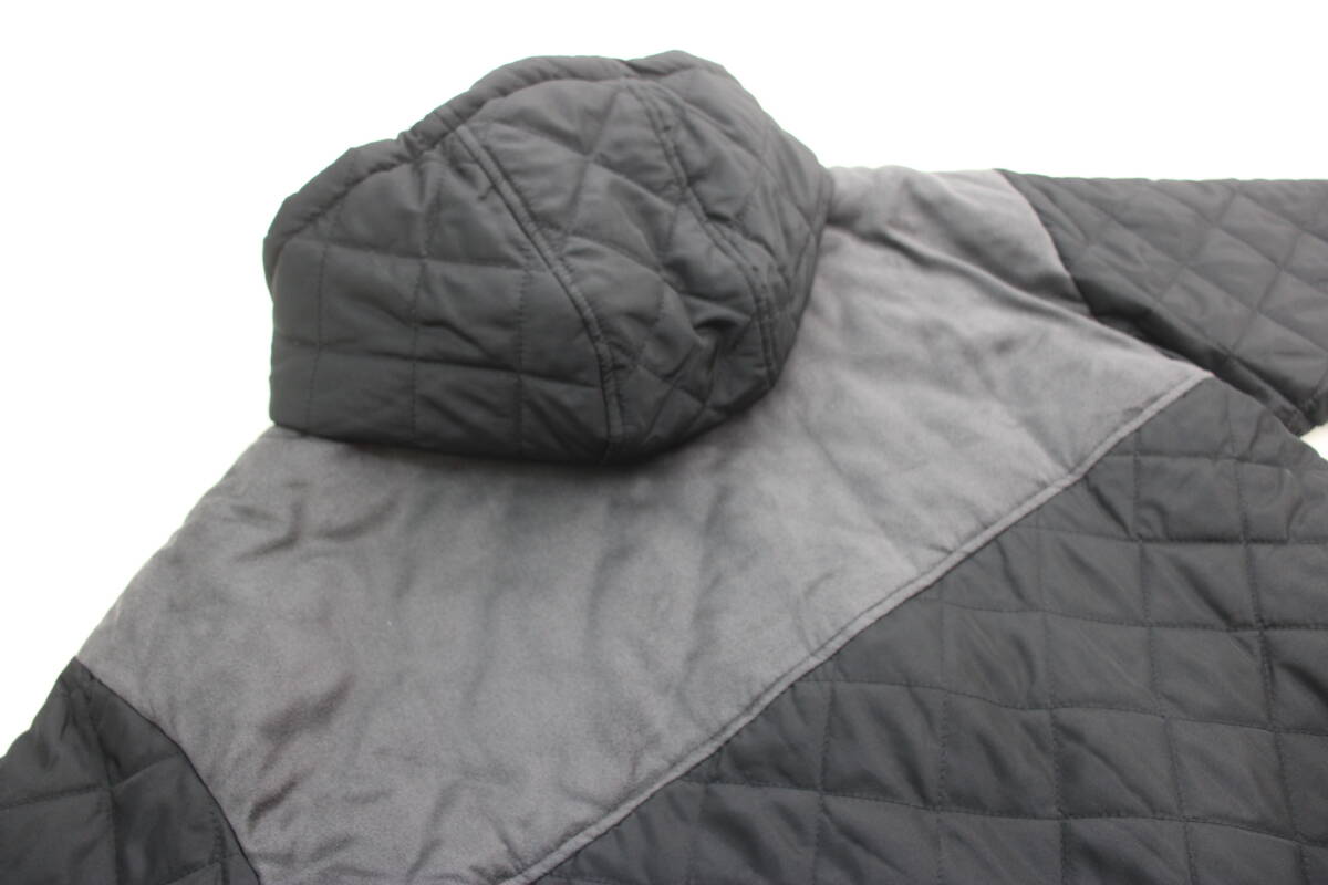 6520 新品 スエード切替フードキルトロングコート ブラックFサイズ