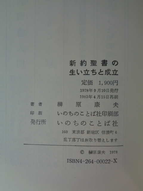PL5973 新約聖書の生い立ちと成立 榊原康夫 著 いのちのことば社