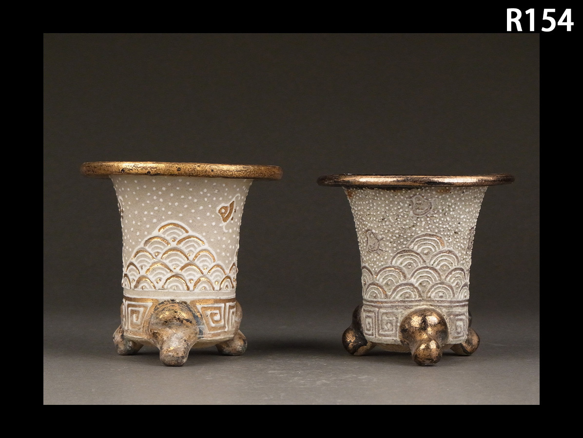 | 京楽焼 作家物 波千鳥文 万年青鉢 二種 ① | ||||