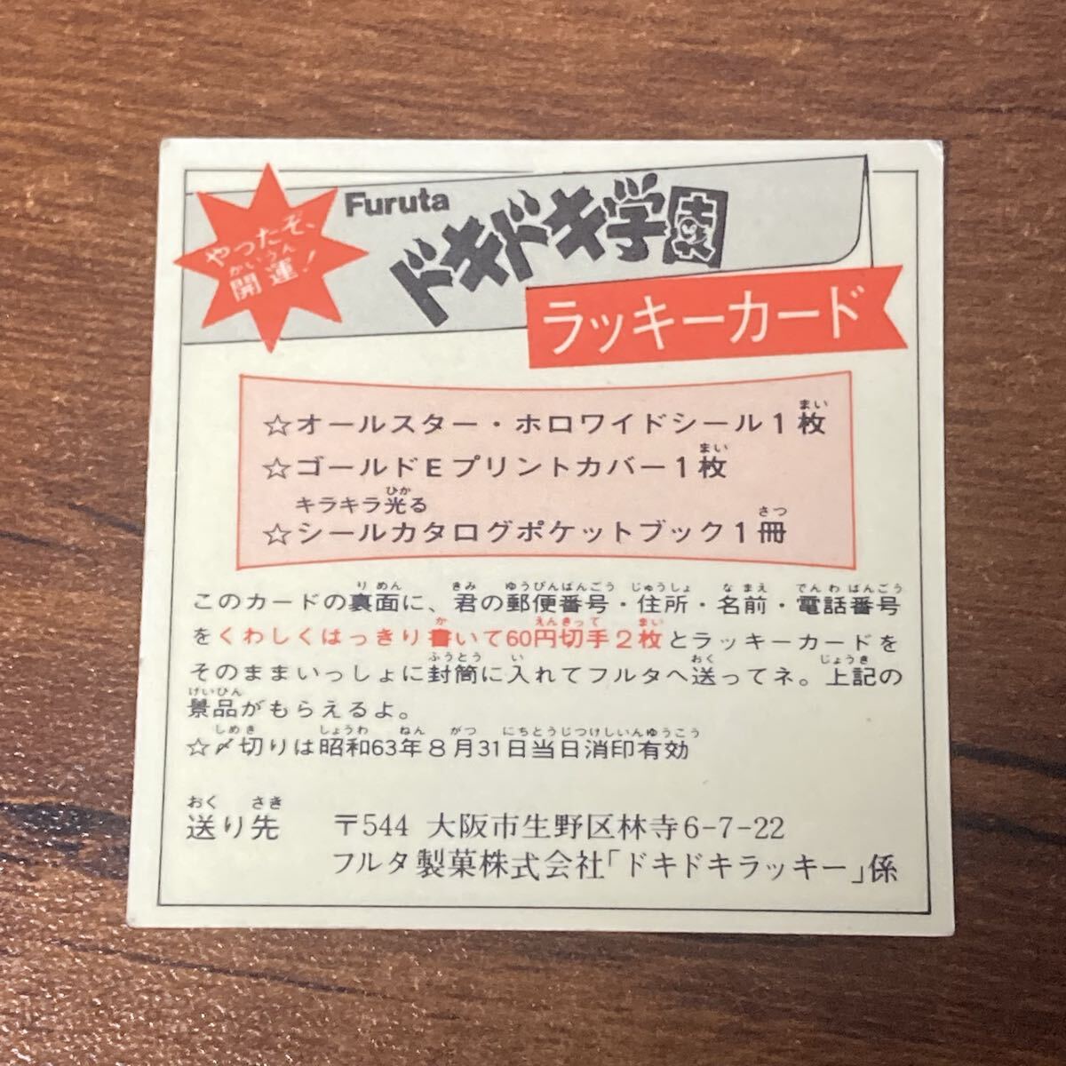 E63 ドキドキ学園 ラッキーカード 当選シール マイナーシール 当時物 Furuta フルタ CR