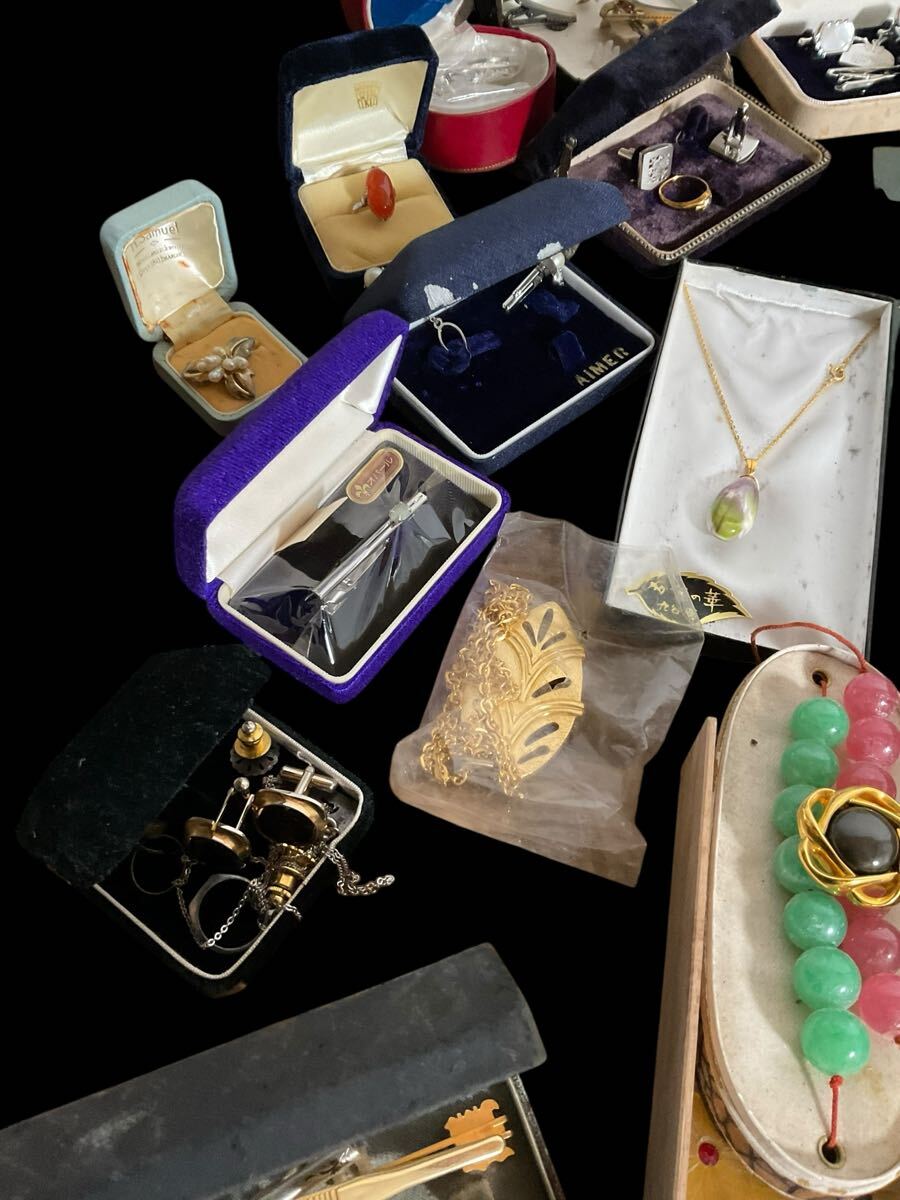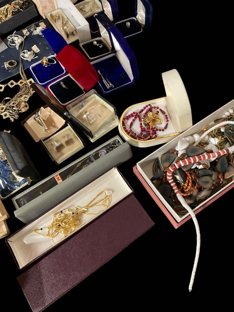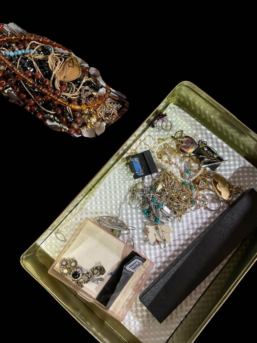 H02/ ネックレス アクセサリー ブローチ 指輪 イヤリング タイピン カフス まとめて大量箱ごと約8kg