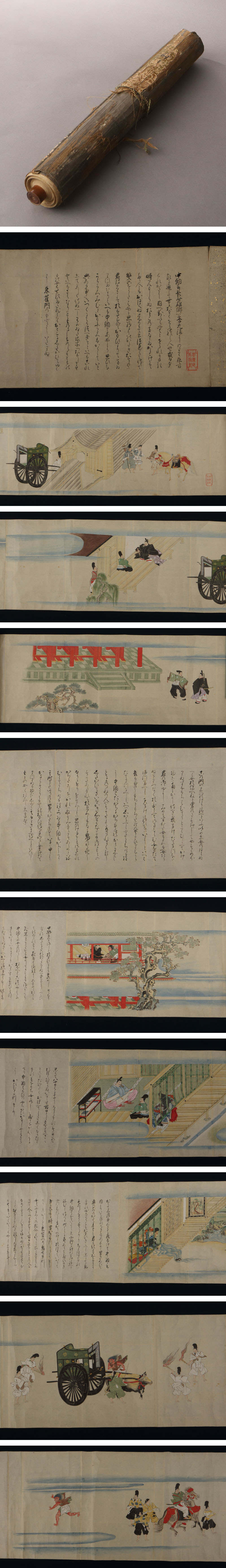 委託HK◇時代 長谷雄草紙絵巻 宮原水雲旧蔵品(狩野派 土佐絵 絵巻物 物語絵 近代日本画 復古大和絵 古画 粉本)