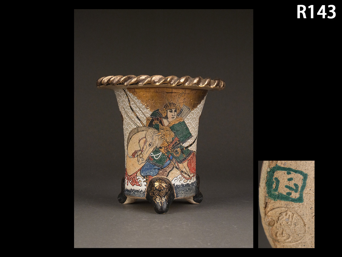 | 京楽焼 作家物 騎馬武者文 万年青鉢 高さ約16cm | ||||