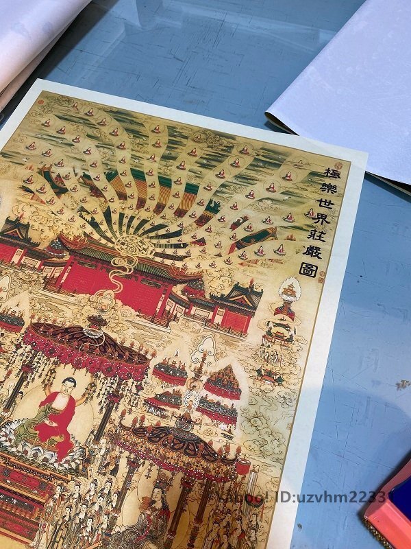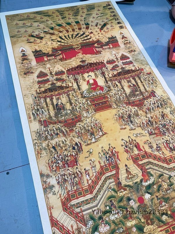 極楽荘厳図 清時代 名家 名家丁観鵬 仏教美術 仏画 絹本 東洋画 中堂画 掛け物 未表装