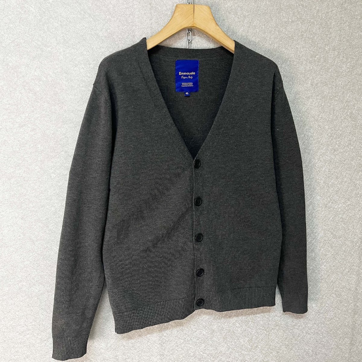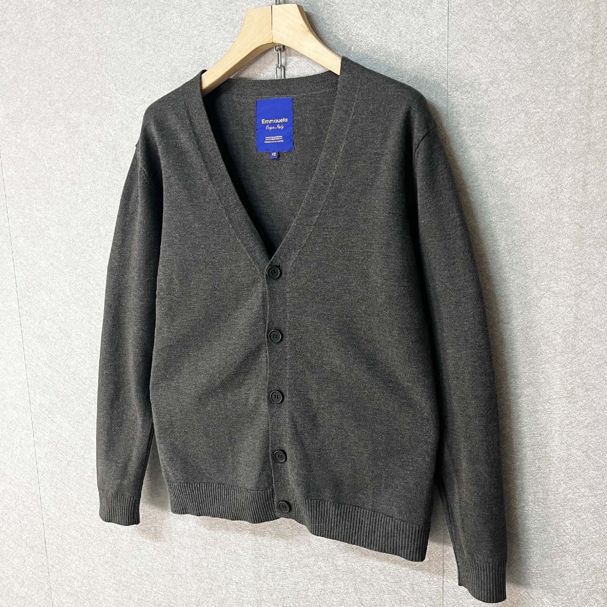 高級・カーディガン 定価4万◆Emmauela・イタリア・ミラノ発◆ウール混 柔らか 無地 Vネック ニット トップス ジャケット メンズ L/48