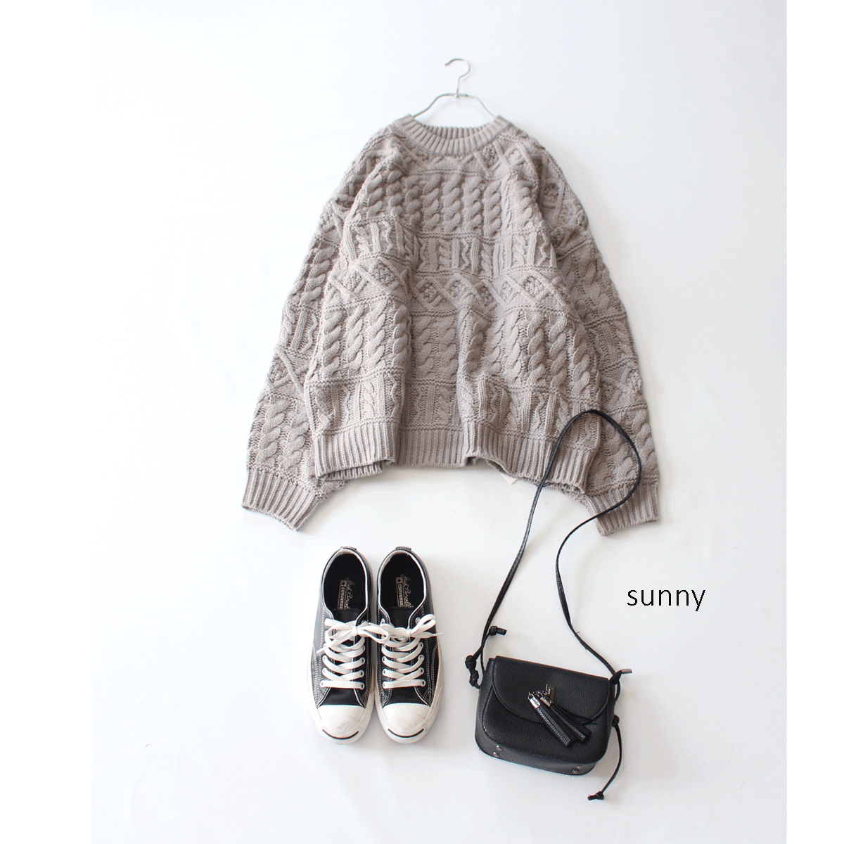 新品★MN.L★MONO-MART★ケーブルアラン手編み風ニットプルオーバー★