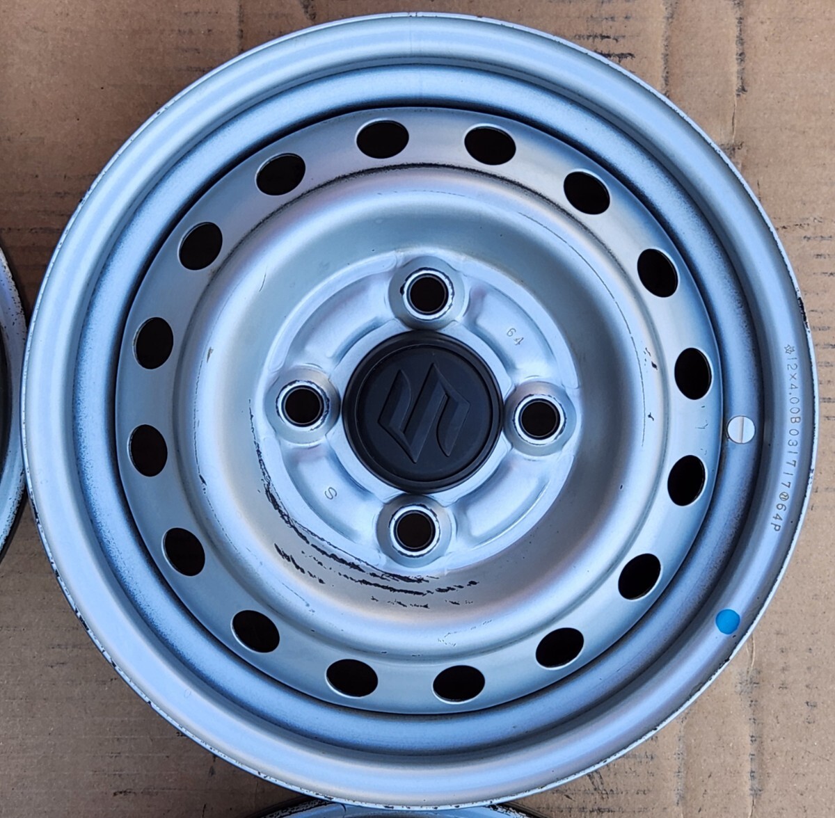 DA17V スズキエブリィ純正 センターキャップ付 12インチスチールホイール 4本セット 交換 予備 車検 スタッドレス用等 DA64V DA62V