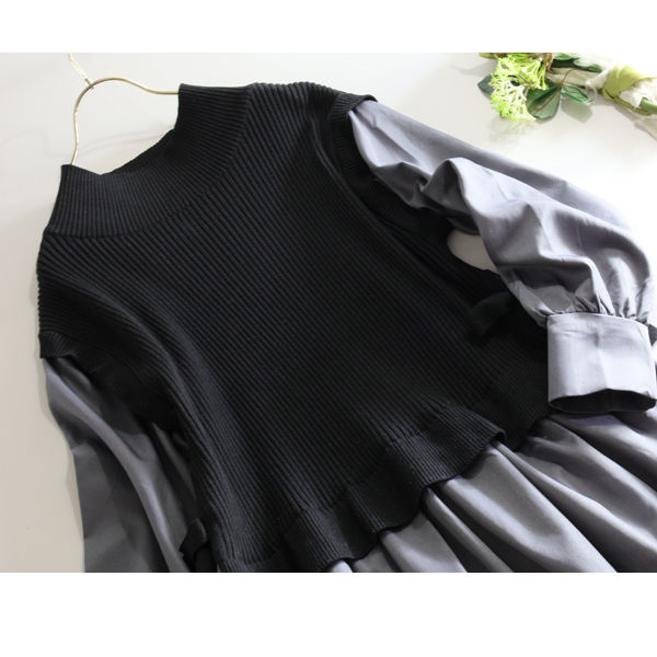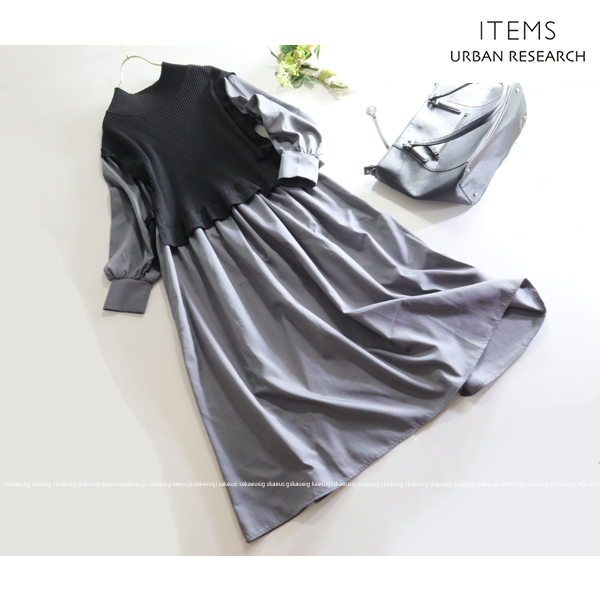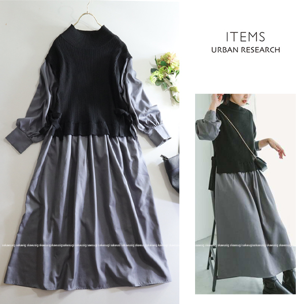 アーバンリサーチITEMS アイテムズ★大人可愛い♪ハイネックニット切替えドッキングロング丈ワンピース