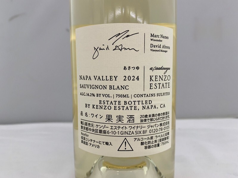 銘柄【ワイン 白 果実酒 asatsuyu あさつゆ NAPA VALLEY 2024 SAUVIGNON BLANC KENZO ESTATE 750ml 14.2% 未開栓】 内容量/750ml 度数/14.2% 状態/ボトル全体に小傷有 付属品/無し