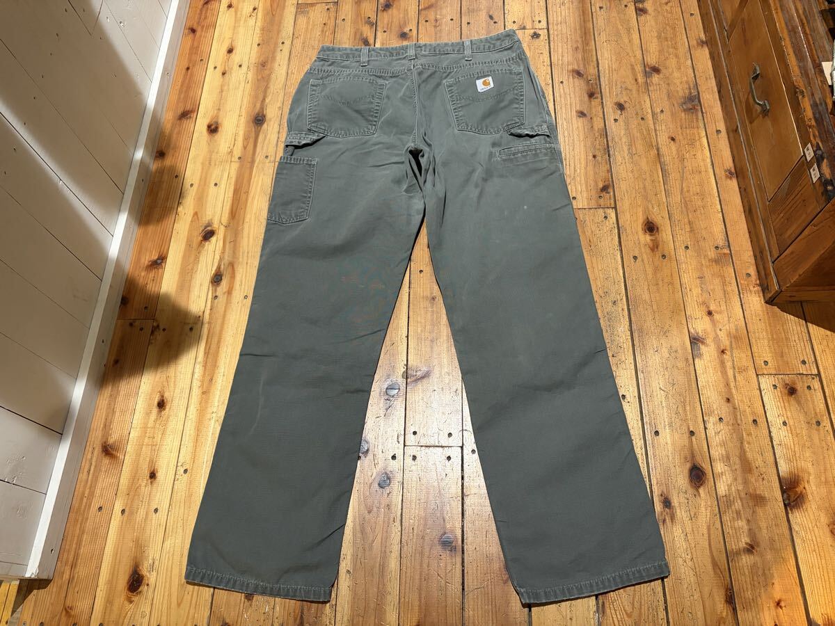 カーハート w33相当 ダック地 ペインターパンツ カーキ ワークパンツ 100円スタート 売り切り 古着 ストレート work USA輸入