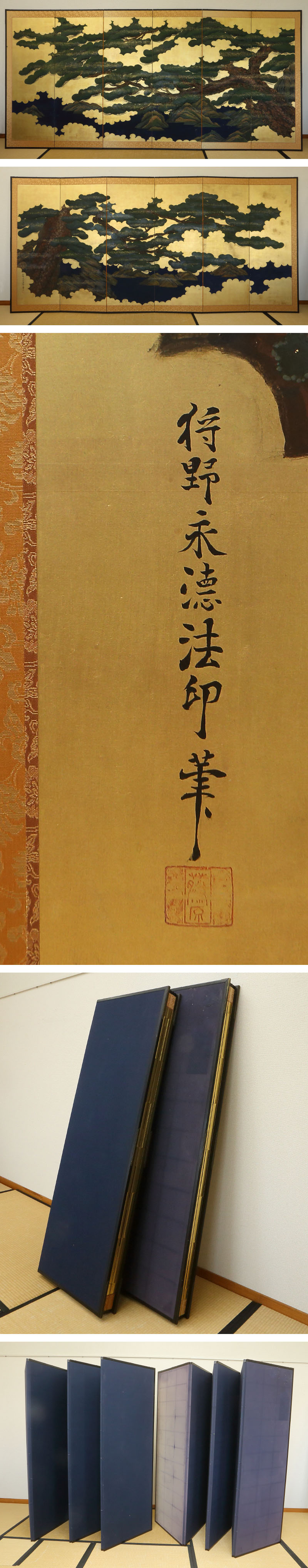 狩野永徳 金地松図屏風 六曲一双 ※2個口送料着払い