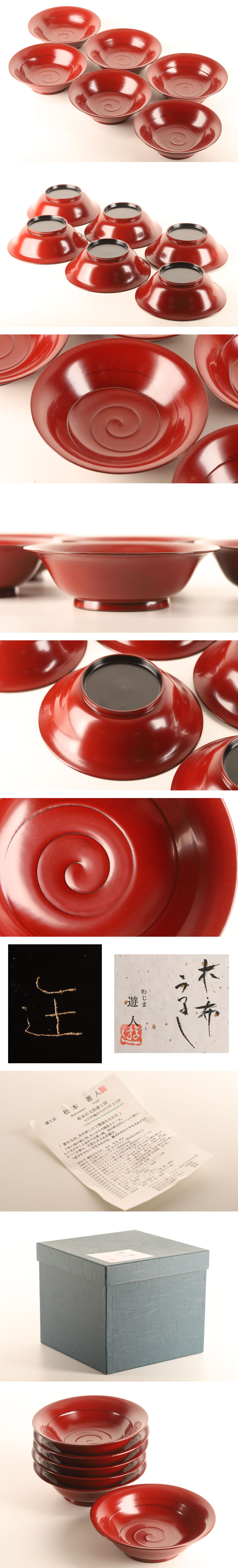 【流】松本遊人 朱塗 平鉢 共箱 UE108