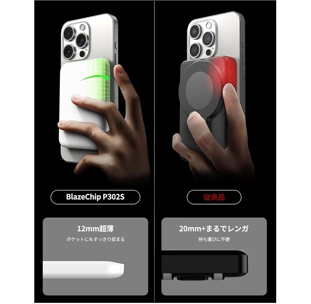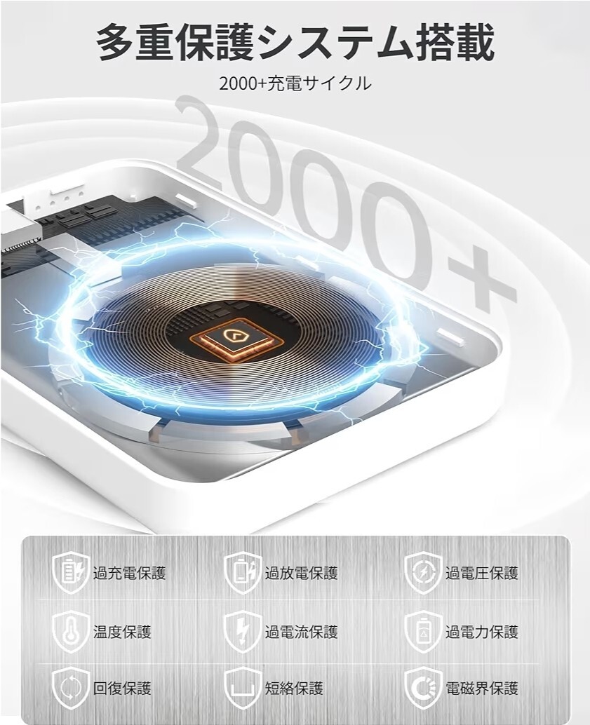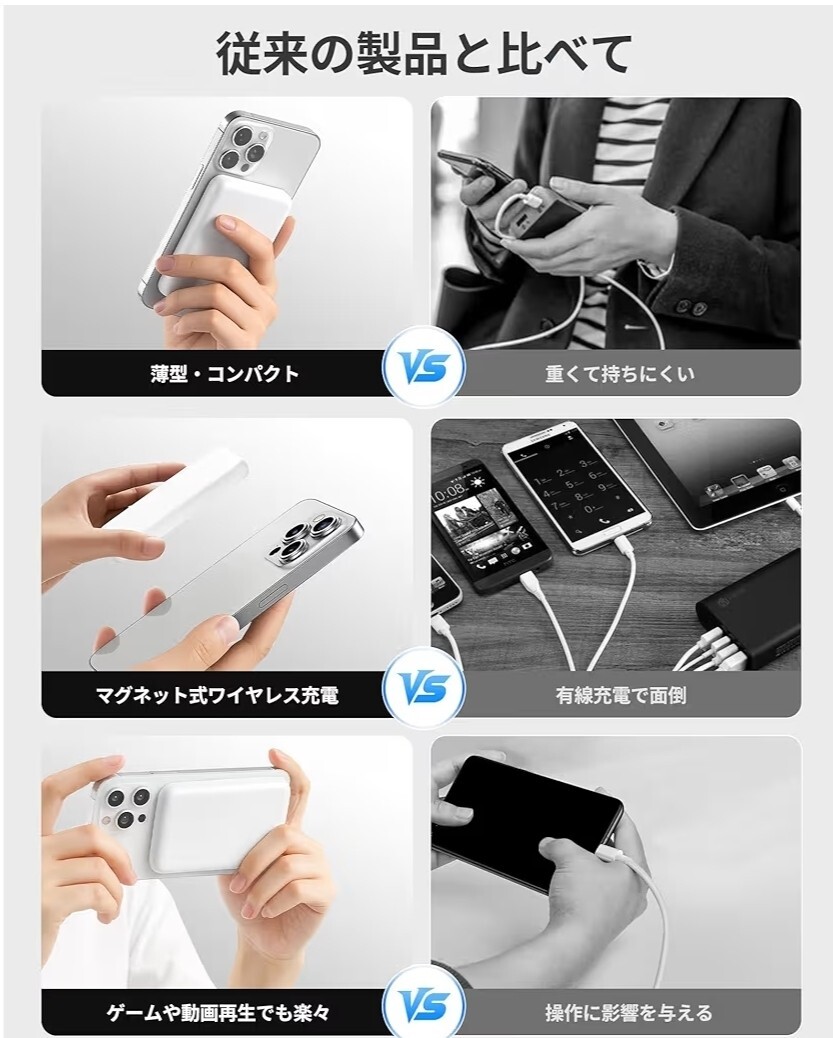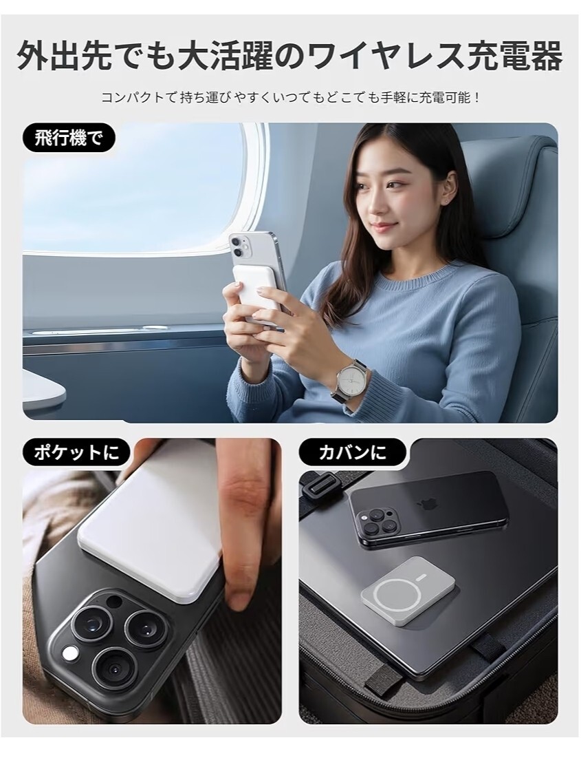 モバイル バッテリー MagSafe対応 5000mAh ワイヤレス充電器 マグセーフ充電器 Lightning入力 PSE認証済 iPhone 16/15/ 14/ 13/ 12