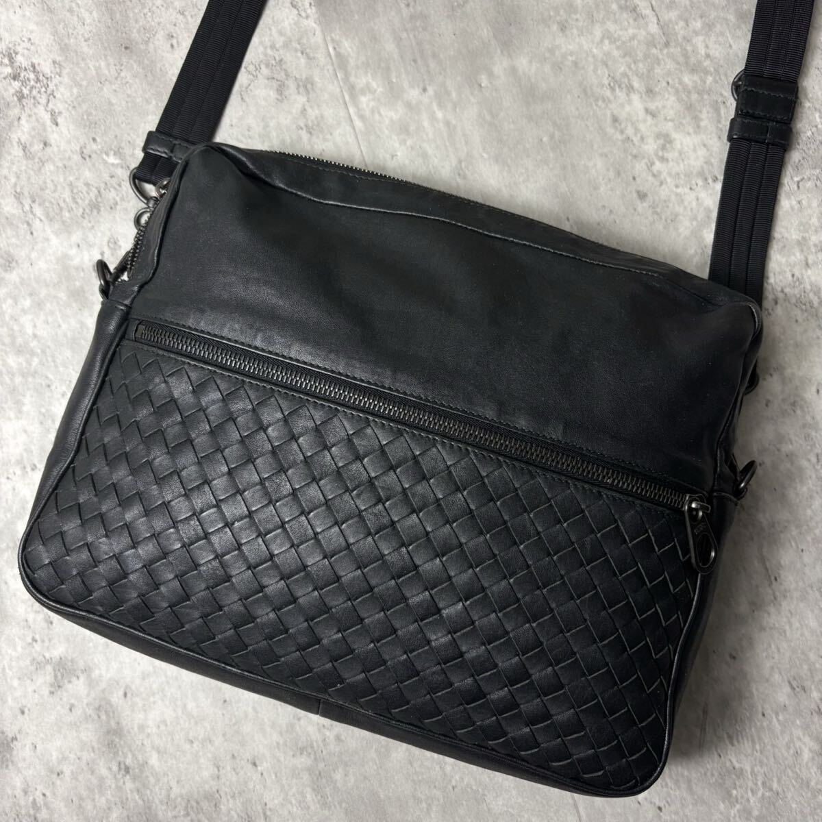 極美品/イントレチャート●BOTTEGA VENETA ボッテガヴェネタ ショルダーバッグ 2way 斜め掛け 編み込み レザー 本革 ビジネス メンズ 黒