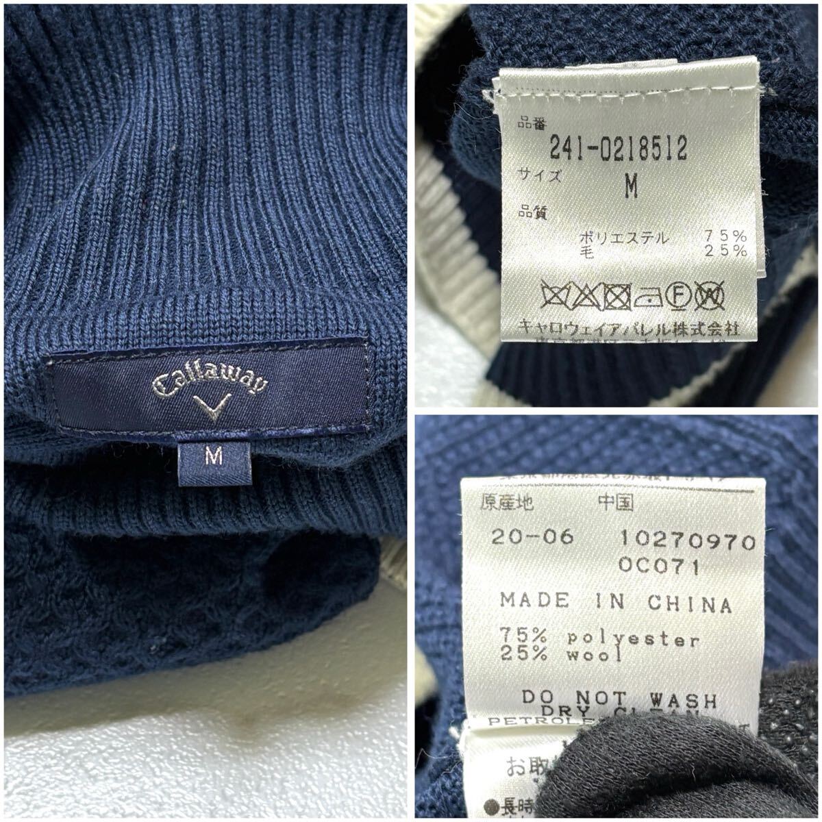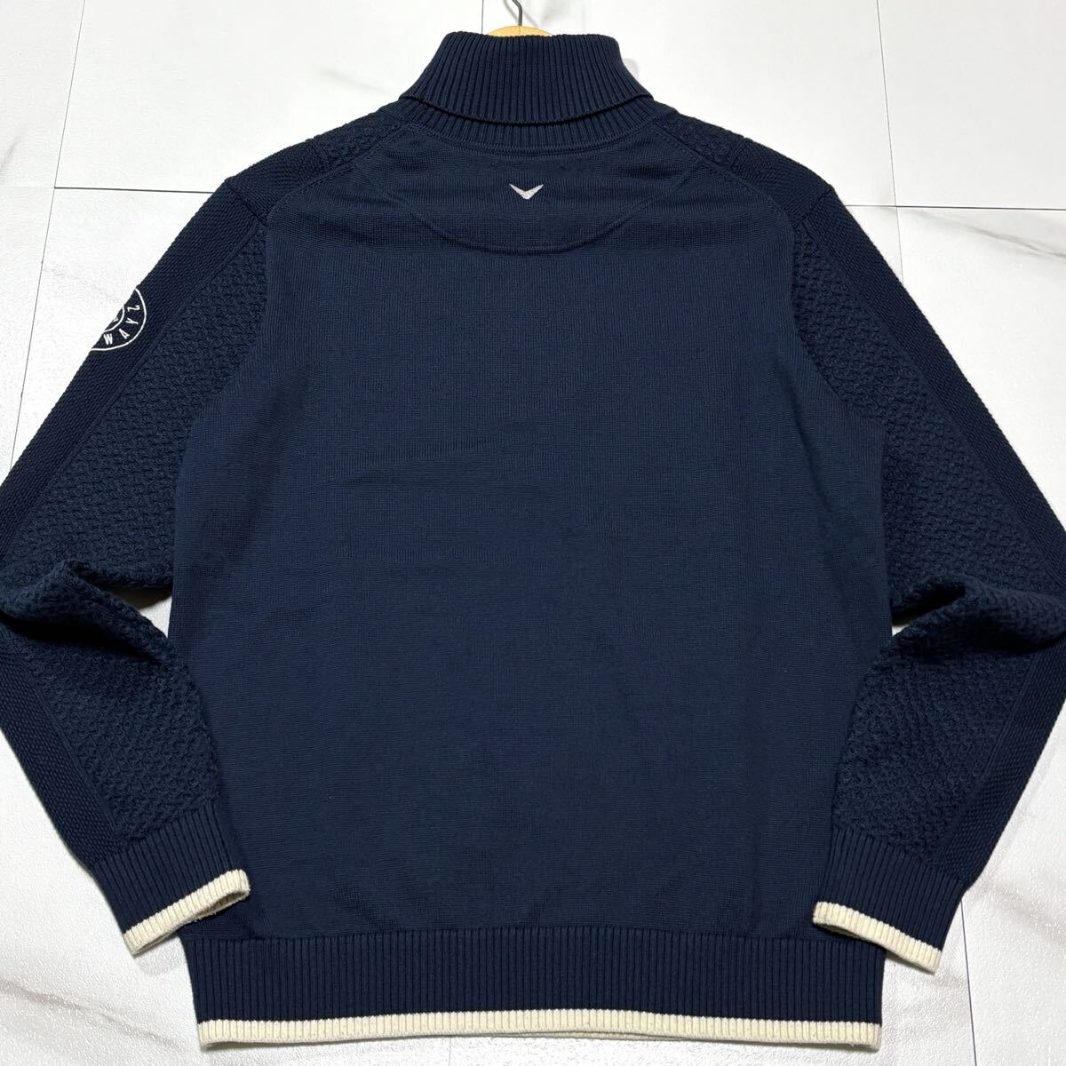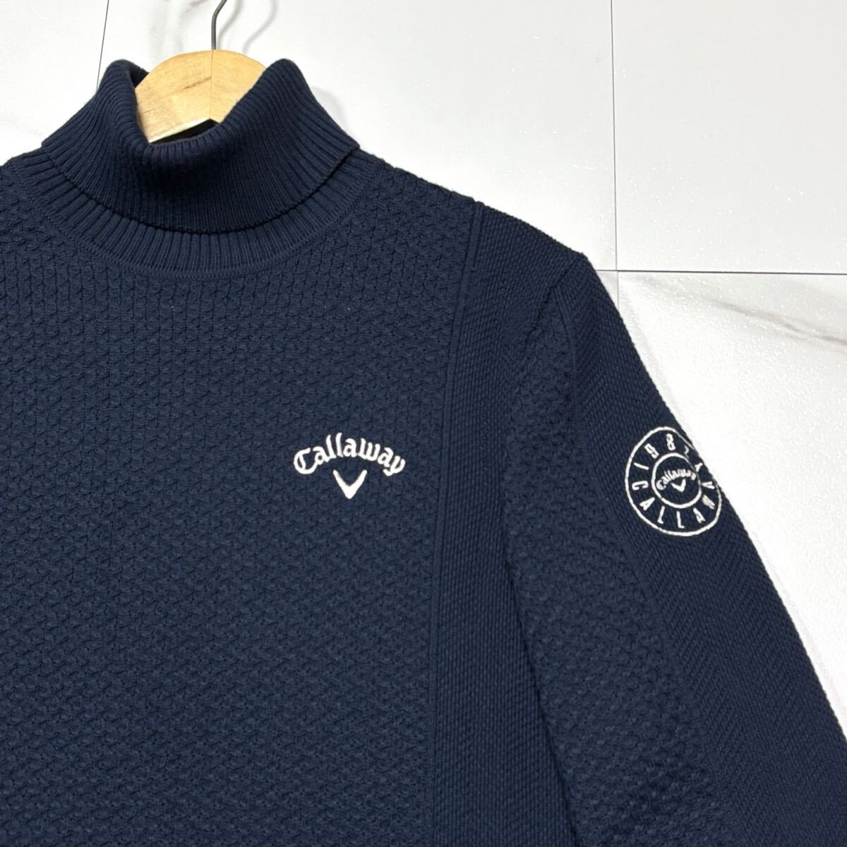 極美品● callaway キャロウェイ タートルネック GOLF ゴルフウェア ニット セーター 肉厚 ロゴ刺繍 ネイビー Mサイズ