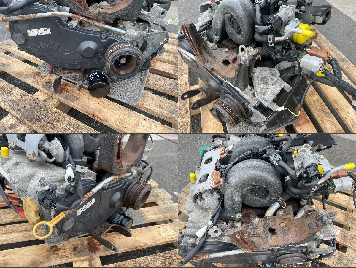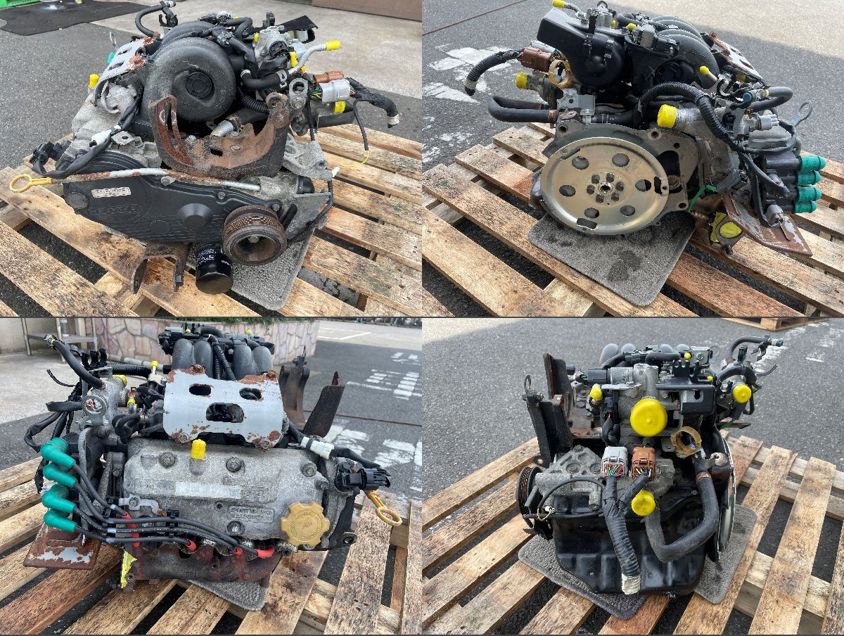 ※まとめて取引を選択された際に、 どちらか片方の商品の送料が0円になってしまう事が多々ありますので、 まとめて取引には基本的に対応しておりません。 万が一まとめて取引を選択された際でも、 商品分の送料を支払って頂くことになりますのでご了承ください。 こちらの商品は、福山通運で発送する大物商品の為、個人宅様の配送は出来ません。 個人宅の方は最寄りの営業所止めとなりますので、必ず営業所をオーダーフォーム備考欄に入力してください。 最寄りの営業所の連絡が無い場合、落札者様の近所の営業所に発送をする場合があります。 こちらの商品は、パレットに載せての発送になります。 ■梱包サイズ 縦(パレット含む):約1000mm 横(パレット含む):約1200mm 高さ(パレット含む):約600mm 重量(パレット含む):約90kg 商品をご覧いただきありがとうございます。 スバルTT1 サンバートラックのEN07エンジン本体になります。 過給機無しのNAエンジンです。 H19年式 TBのグレードより取り外しました。 ■実動車からの取り外し ■距離:100,401km ■3AT ■エンジン番号:344621 ■メーカーの検索ページより、リコールの確認をし、以下の内容が対象で実施済みでした。 ・2017年9月7日クランクプーリの点検又は交換のリコール実施済み。 〇エンジン圧縮: 1番:15.4k 2番:15.2k 3番:15.2k 4番:15.1k あくまで目安です。 ○始動確認済 ○水温の上昇:適正内 ○LLC吹き返し:無し ○エンジン吹け上がり:問題無し 〇オイル漏れ:無し 〇スキャンツールによる自己診断ではエンジンシステムに異常なし 〇エンジン始動後メーターのチェックランプ点灯なし ※上記以外の項目に関しては未チェックとなります。 エンジンを始動した際の動画を載せておきますので参考にしてください。 ○実際に使用されていた中古品となります。 ○商品は使用による汚れ、傷、錆等はあります。 〇エンジンブロック、イグニッションコイル裏の遮熱板、その他ブラケット等鉄部品に錆があります。 〇エンジン取り外し後の確認では、多量のオイル漏れはありませんでした。 ※ECU、ハーネス、補機類は欠品となります。 ※エンジンのタペットカバーを開けて内部の写真を撮っております。その為、使用時にはタペットカバーのパッキンの交換をお勧め致します。 ※エンジン使用前には消耗部品を交換してからの使用をお勧め致します。 〇他車種、グレード違いの流用についてはこちらでは確認できませんのでご入札者様の方でご確認ください。 画像の物が全てです。 トラブル防止の為に、ご不明な点等ありましたら、入札前にお問い合わせください。 (営業時間外は対応出来ませんのでご注意ください) |
