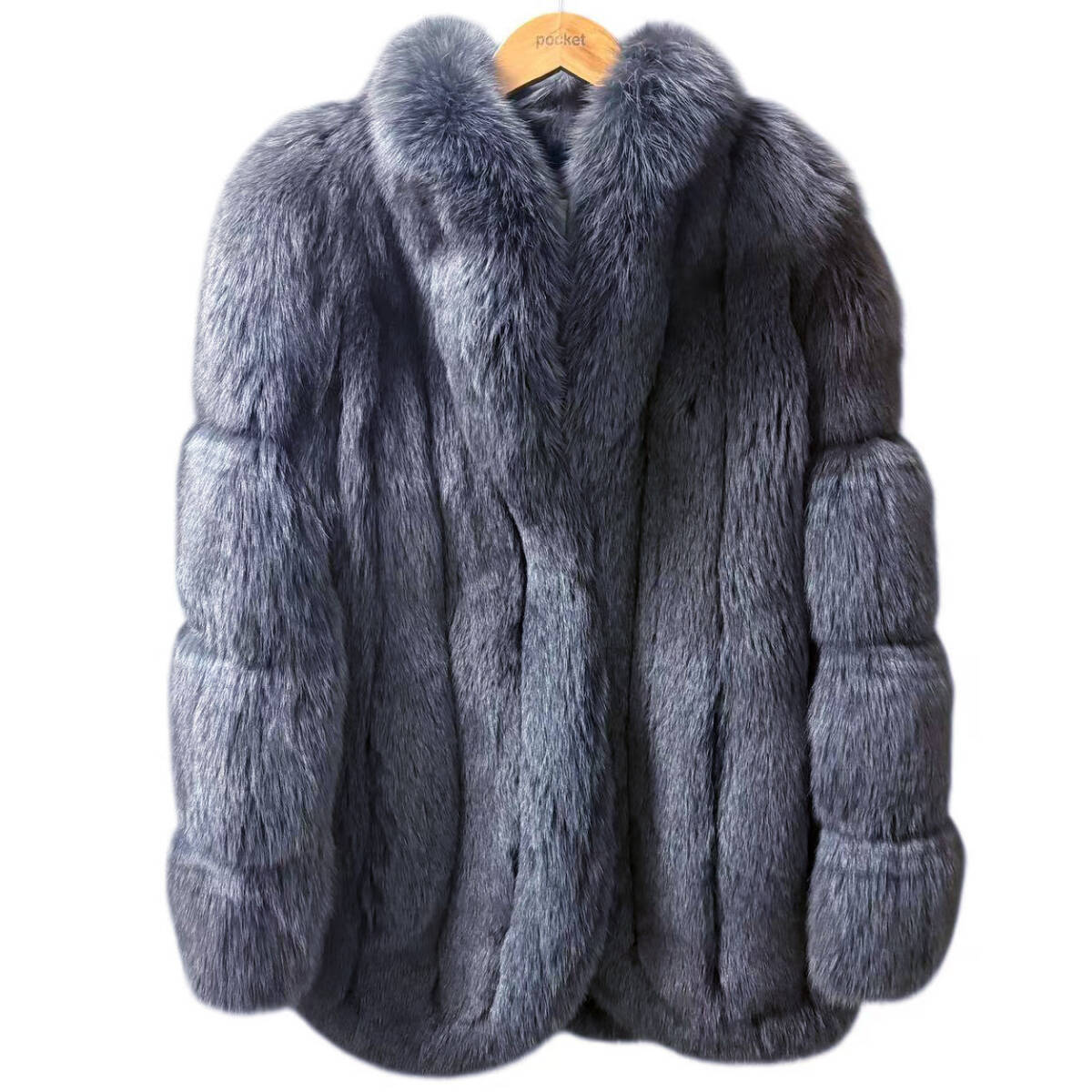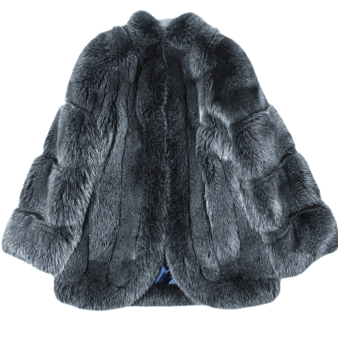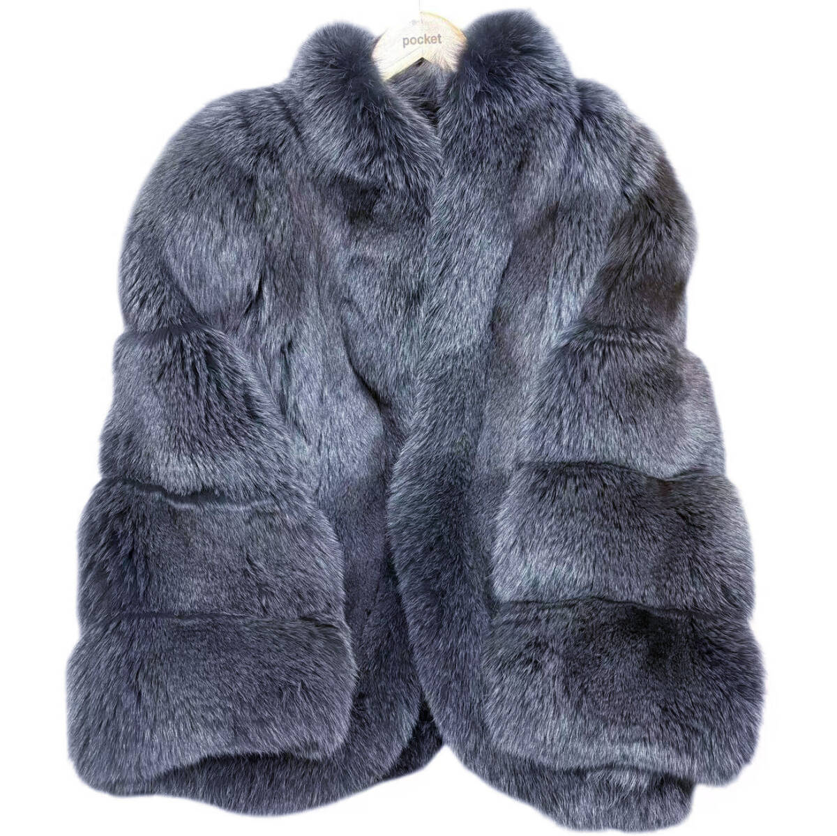 SAGA FOX サガ フォックス 毛皮 高級 ファー レディース デザイン 滑◎ 柔◎ ネイビー