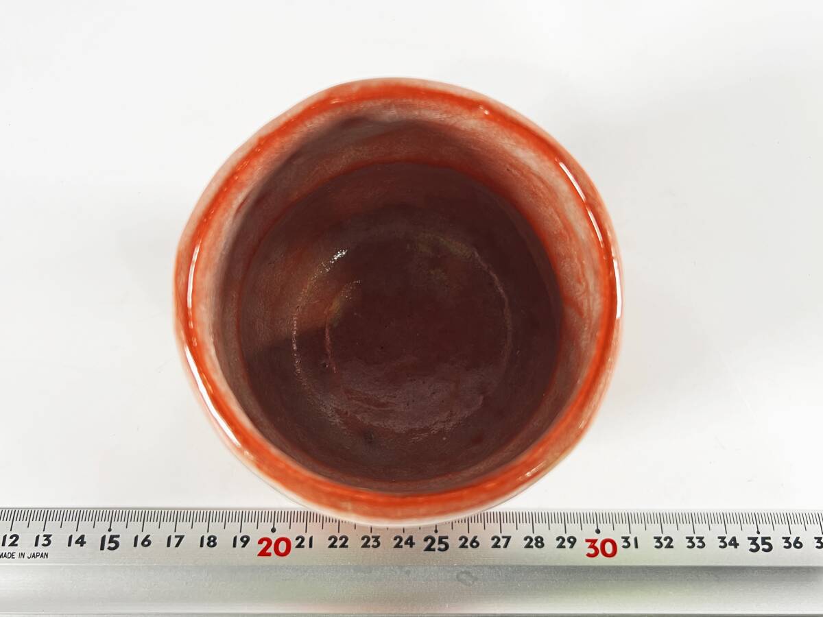 【送料無料・蔵出し・名人作】赤楽筒茶碗 松楽窯 在銘 茶道具 茶器