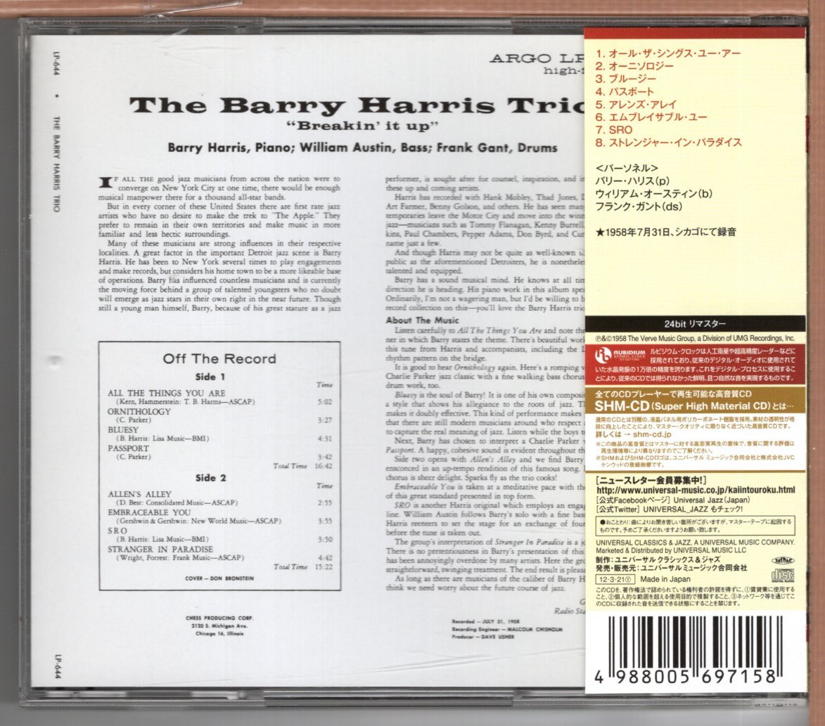 【中古CD】バリー・ハリス・トリオ / ブレイキン・イット・アップ BARRY HARRIS TRIO / BREAKIN' IT UP