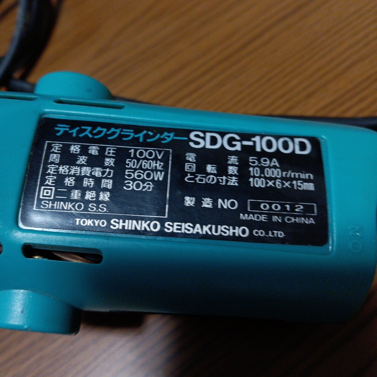 株式会社 新興製作所 ディスクグラインダー SDG-100D 電動工具 簡易動作確認済 現状品 1円スタート